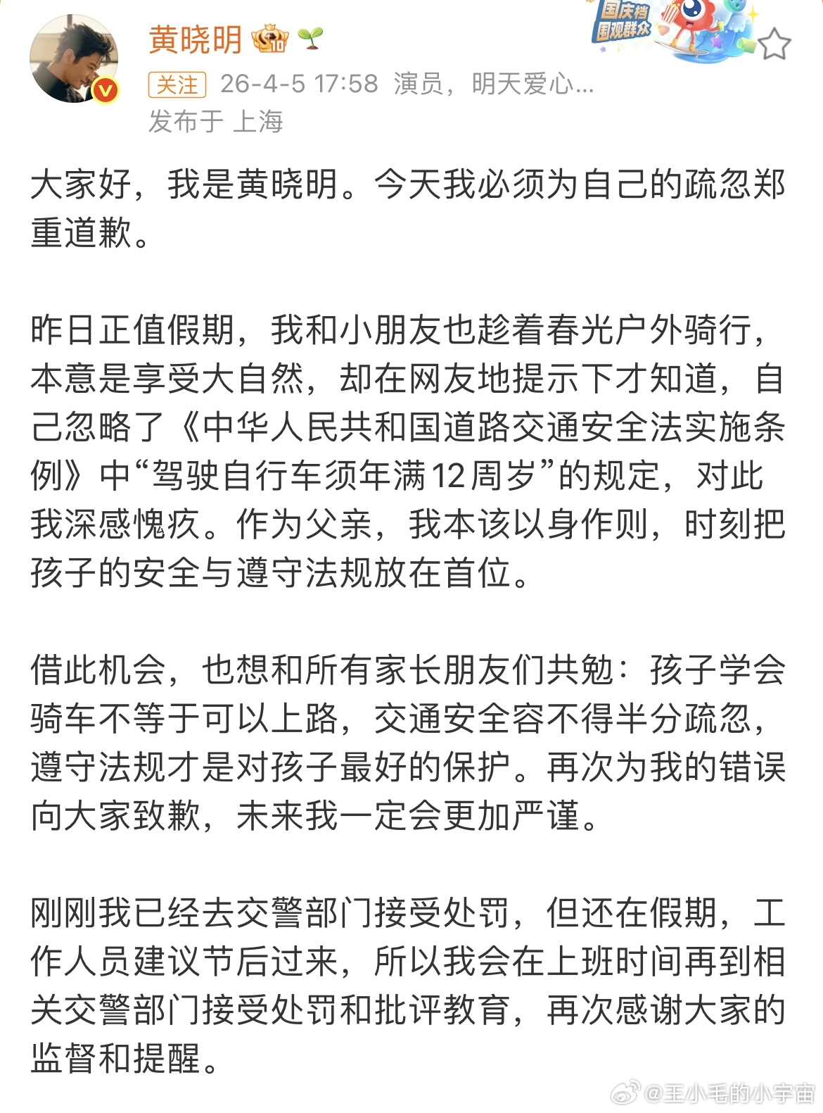 有网友在交警队遇到黄晓明了!