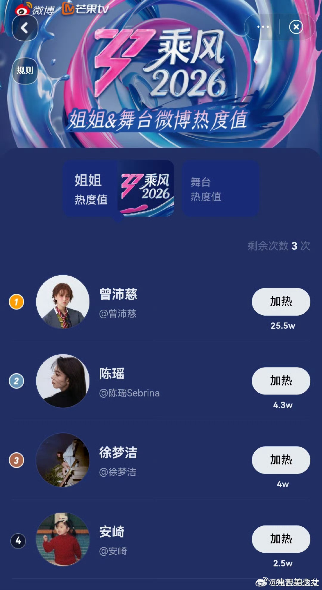 曾沛慈微博热度值破25万曾沛慈乘风初舞台杀疯了!4月7日微博热度破25万断层登顶