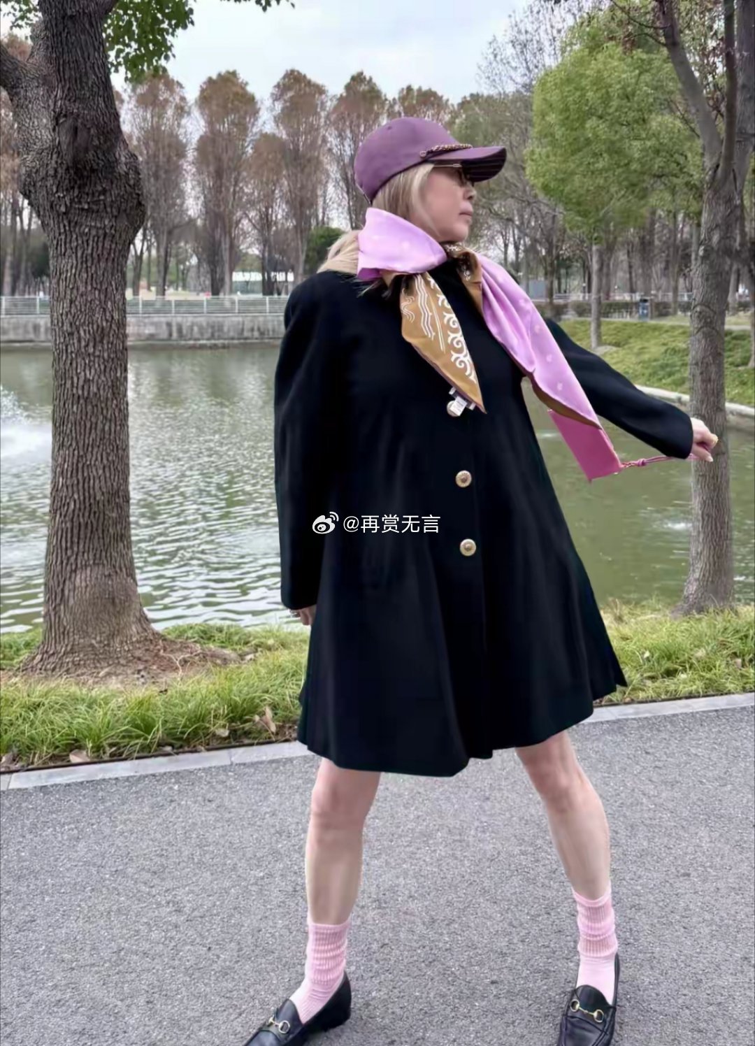 就这双光腿配袜子减了不少分,但是奶奶依旧很时尚。