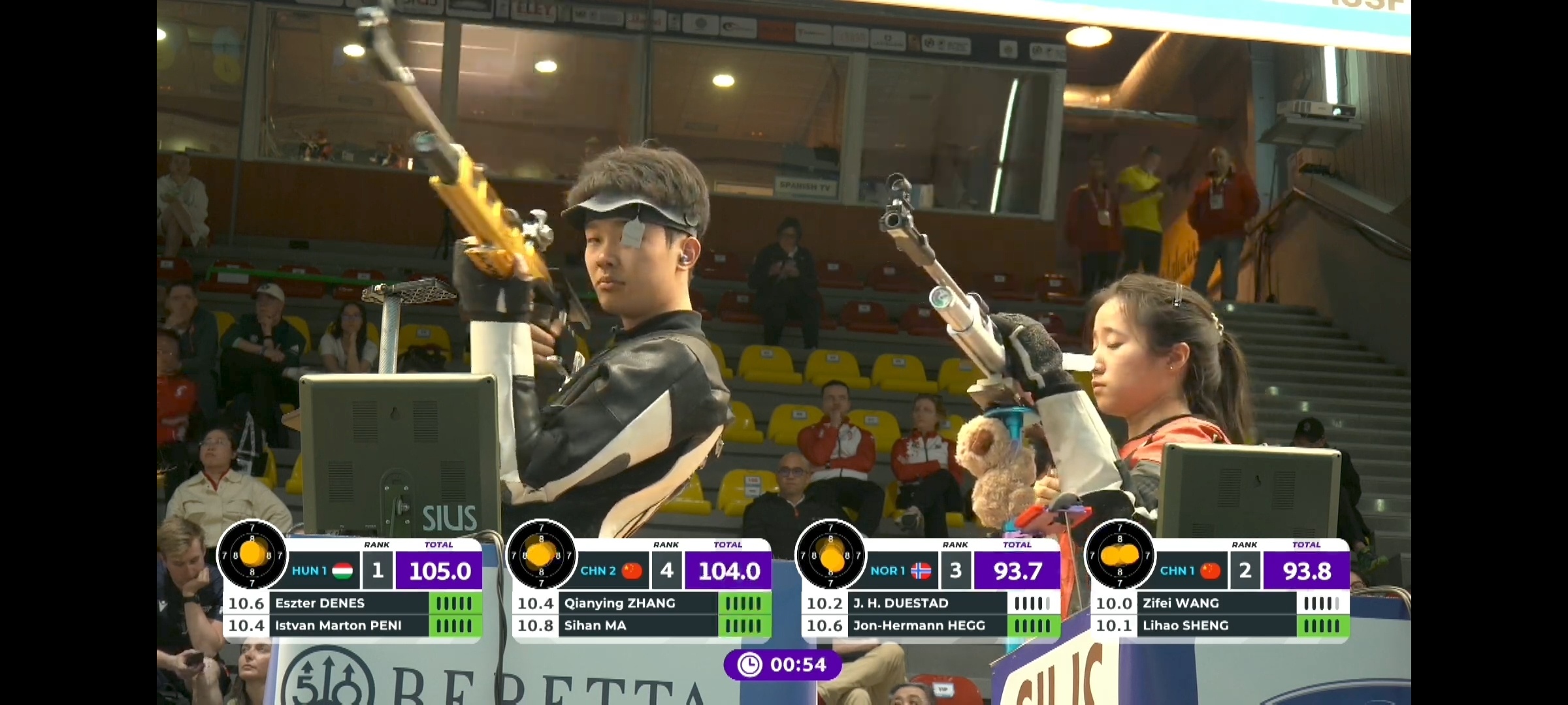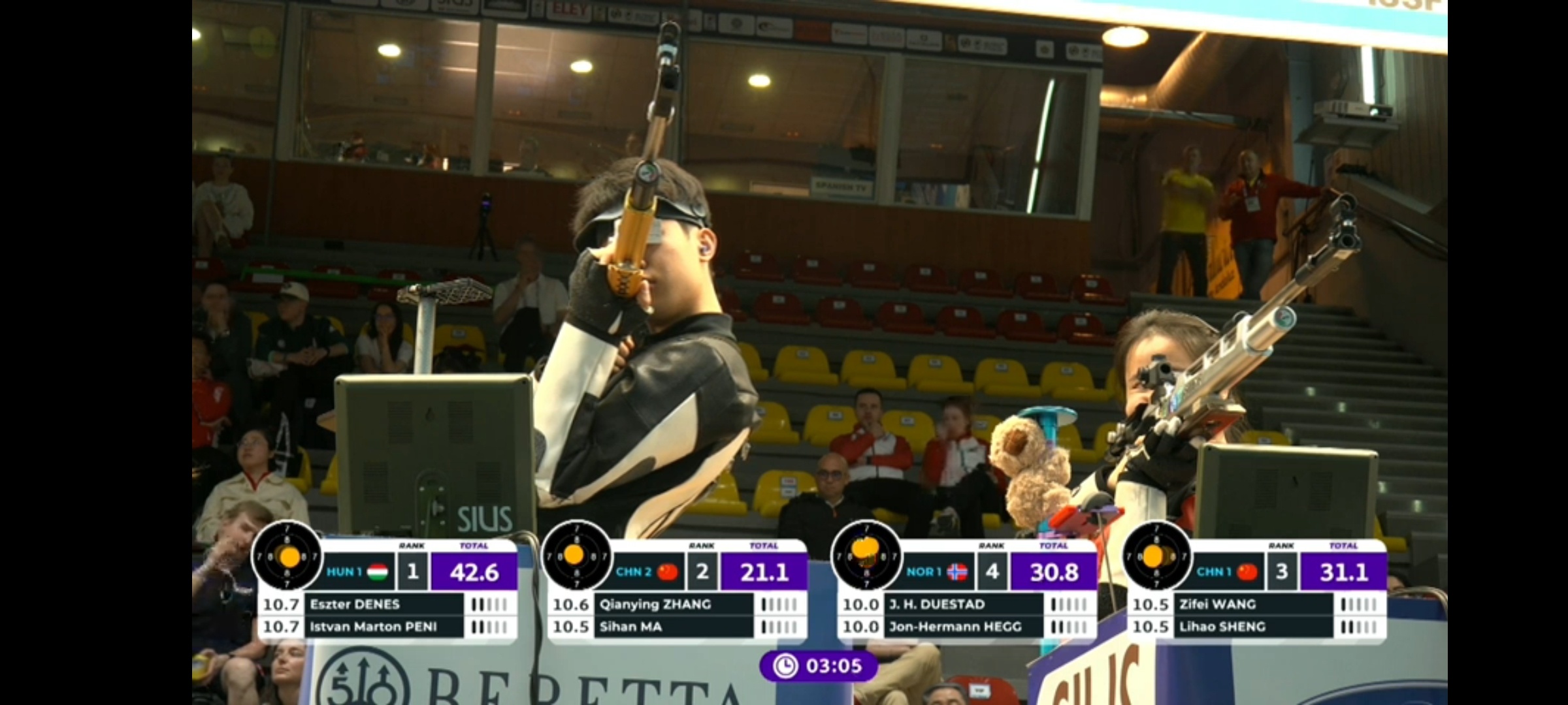 10米气步枪混合团体第四名,张倩颖/马思涵