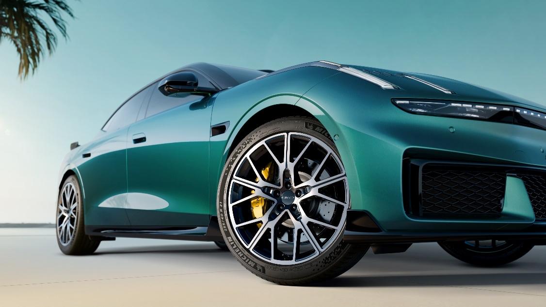 领克10+专属驭风碳纤维尾翼、21英寸锻造轮毂,还有黄色四活塞卡钳