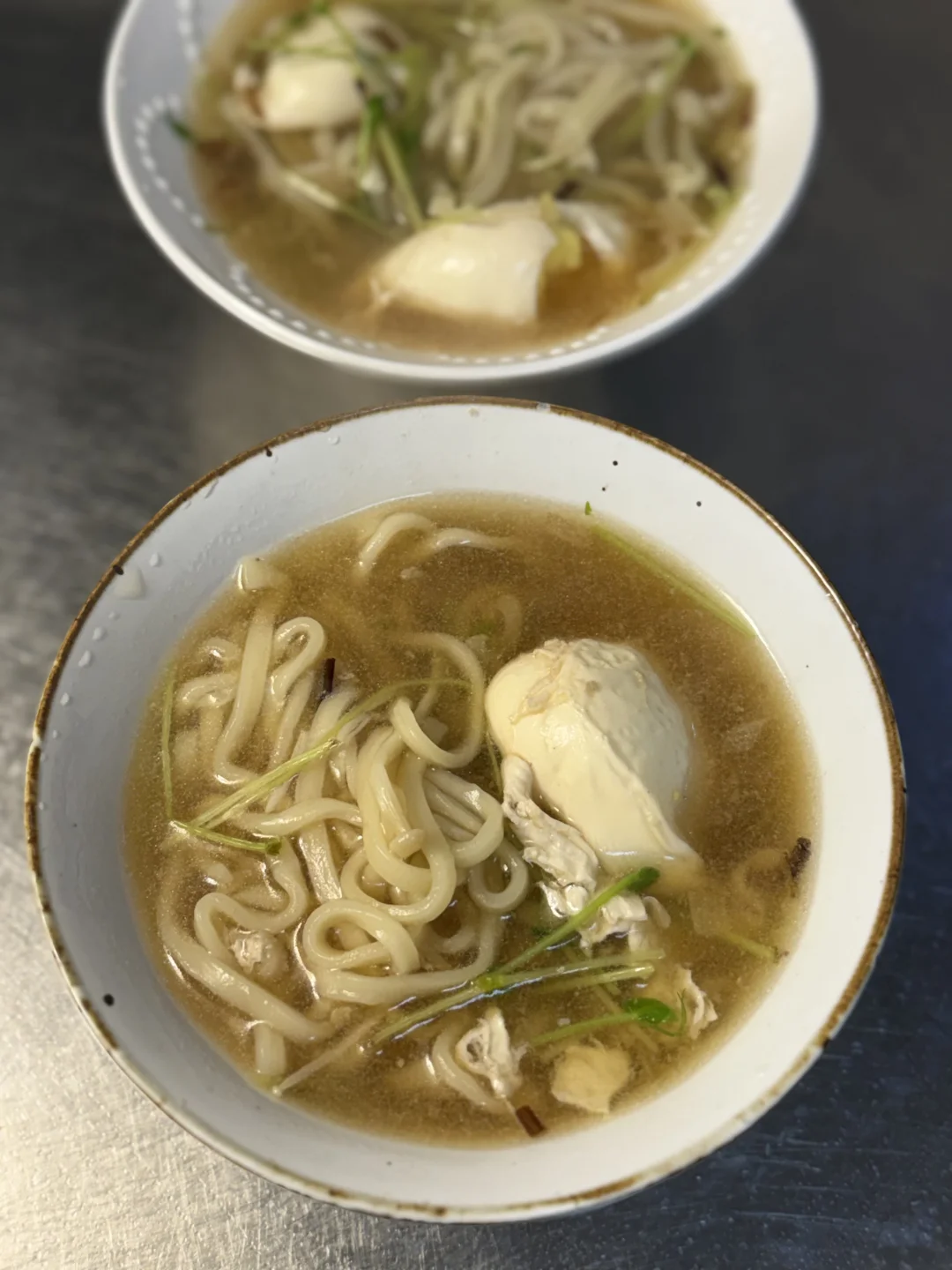 面条的花式做法 汤鲜味美营养丰富 面条的花样吃法 汤鲜味美有滋味 面条 总有碗面是做给你的 没事嚯嚯面 生活就是一碗面 无添加面条 葱花切碎,炸出金黄色,加入醋烹出香味,加入少许生抽酱油,放入清水,加鸡蛋,加入面条煮熟,最后加入适量食盐和自种豌豆苗。