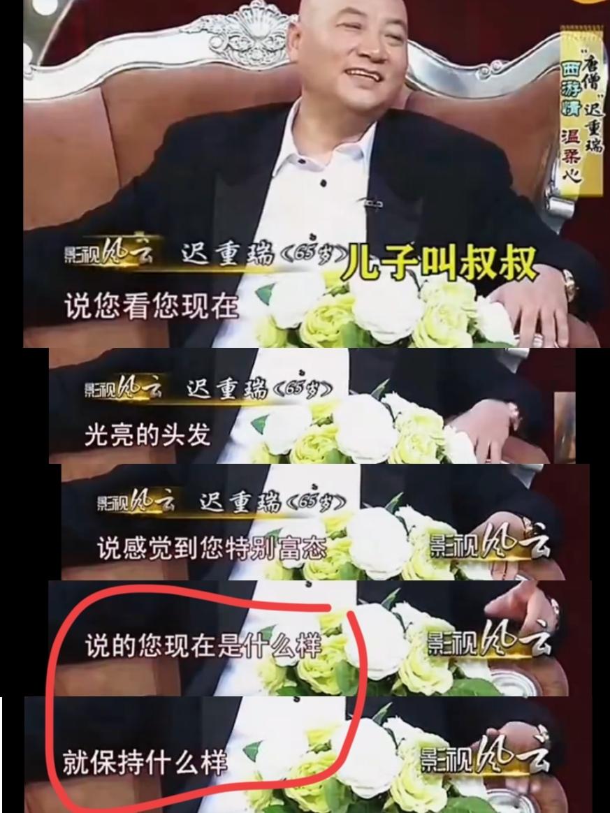 迟重瑞光头36年根本不是刻意人设, 一句话守了半辈子 这才是真通透 迟重瑞和陈丽华很多人只盯着财富差距,却忽略了最戳人的一个细节,他那保持了36年的光头,压根不是为了形象,全是一份藏在细节里的尊重 很多人不知道,迟重瑞年轻时原本有着一头浓密黑发,模样周正气质温润,当年出演西游记唐僧,为了角色才剃成光头,戏拍完后,他原本是打算留回长发的 可就在他与陈丽华结婚后,这个想法被继子赵勇轻轻一句话打消了,赵勇坦言,迟叔叔,你还是别留了,光头的时候特别有风度,特别像我们的长辈 没有逼迫没有争执更没有什么豪门规矩,就是一句很朴素的认可,迟重瑞听完便记在了心里,从此再也没留过长发,这一光头就是整整36年 这事看着小格局却很大,很多重组家庭最难的就是继父母与子女的隔阂,要么委屈迁就,迟重瑞很聪明,他没有摆长辈架子,也没有觉得被冒犯,而是把这句话当成了融入家庭的信号 他留光头不是妥协,是尊重继子女的感受,是体谅陈丽华夹在中间的不易,用最温和的方式让整个家庭相处舒服没有隔阂 也正是这份通透,才让陈丽华的家族格外和睦,子女各自负责家族产业,权力交接平稳有序,从没有豪门争产的闹剧,迟重瑞专心打理紫檀博物馆,不插手商业不抢风头,各司其职彼此敬重 两人相伴36年从未红脸,不是压抑克制而是懂分寸,光头只是外在形式,内里是他对家庭对伴侣最实在的用心,很多人嘲讽他活得卑微,可回看整个家族的和睦安稳,到底谁才是真正的智慧 其实一段关系能不能长久,从来不是靠强势或索取,而是藏在这些愿意为对方退让的小事里 你们说是不?