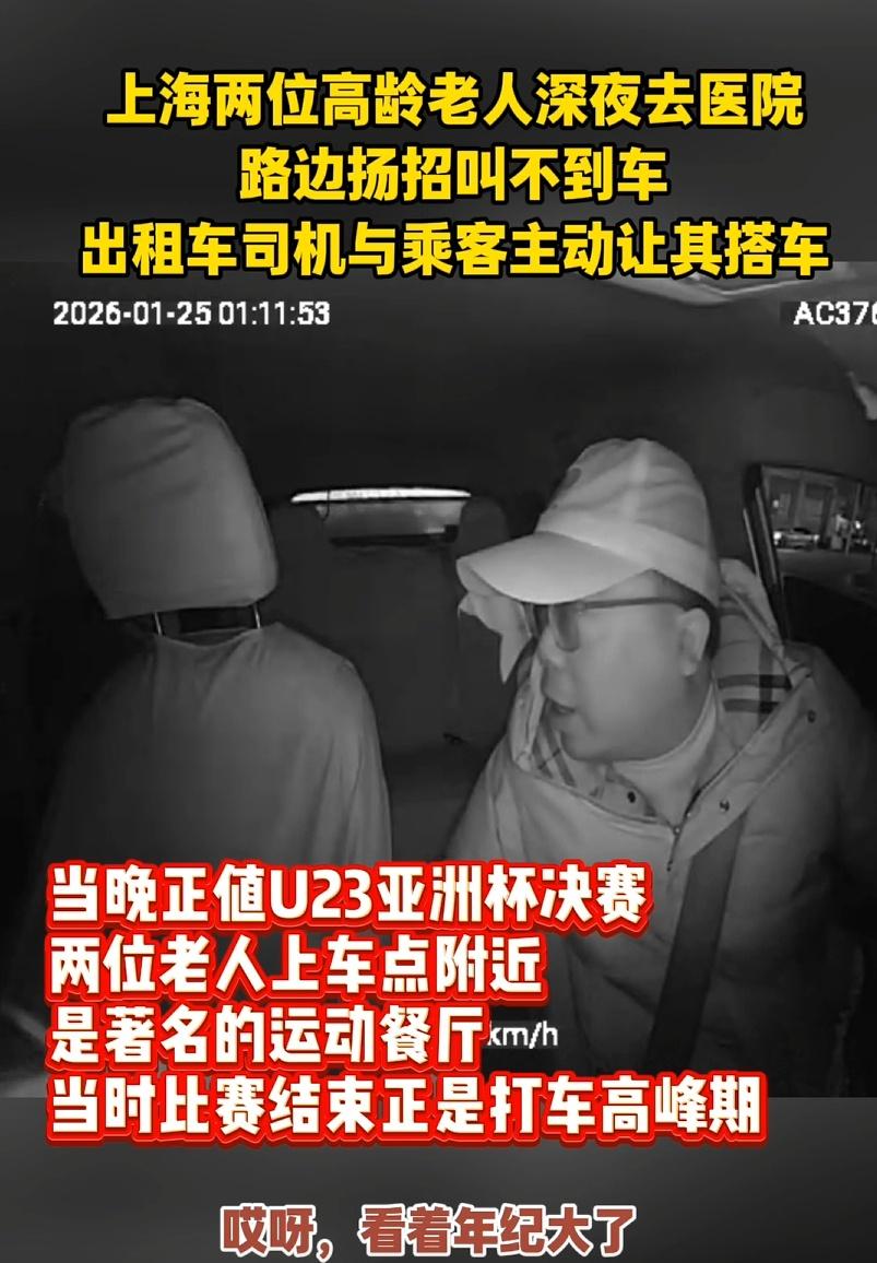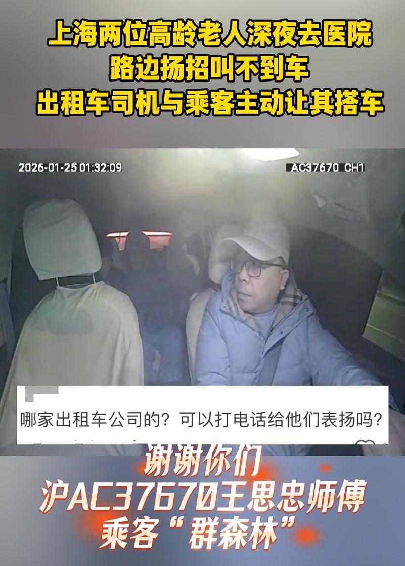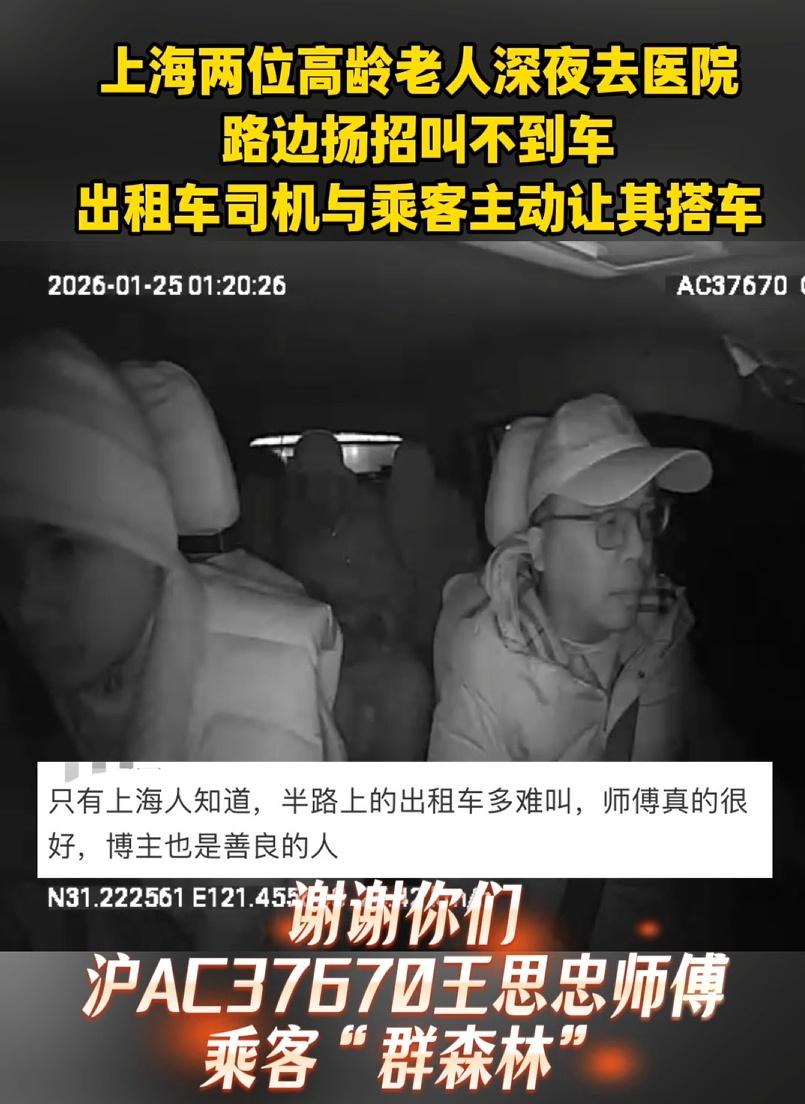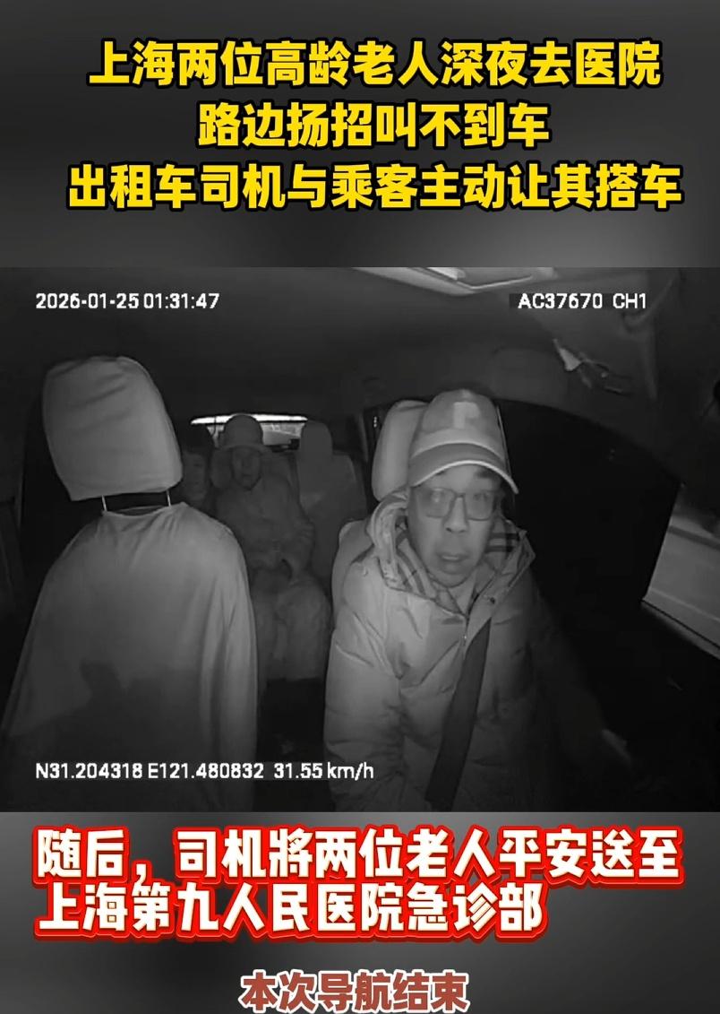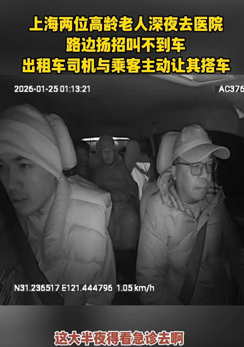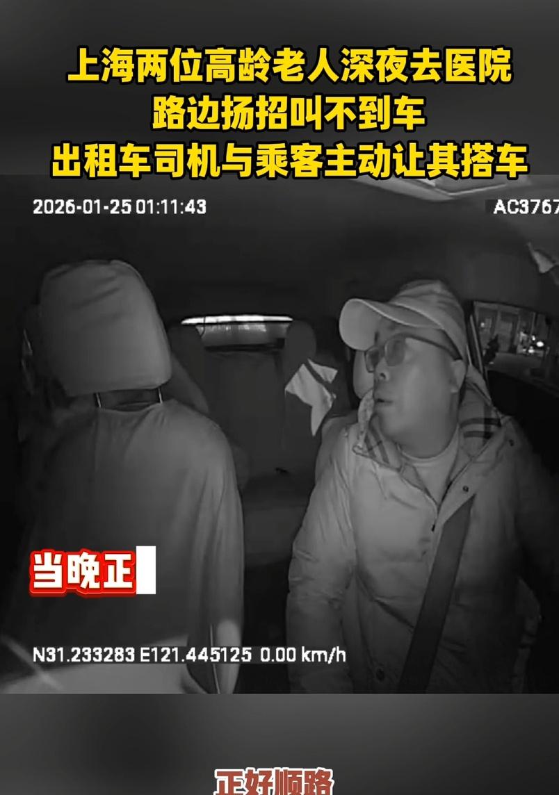 【谢谢你们!深夜路边扬招叫不到车,上海老人深夜就医被的哥乘客暖心捎带】老人深夜就医出租车司机与乘客折返捎上 深夜上海的街头,两位高龄老人,一位七八十岁、一位九十多岁,在路边扬招出租车去医院,却迟迟等不来车。