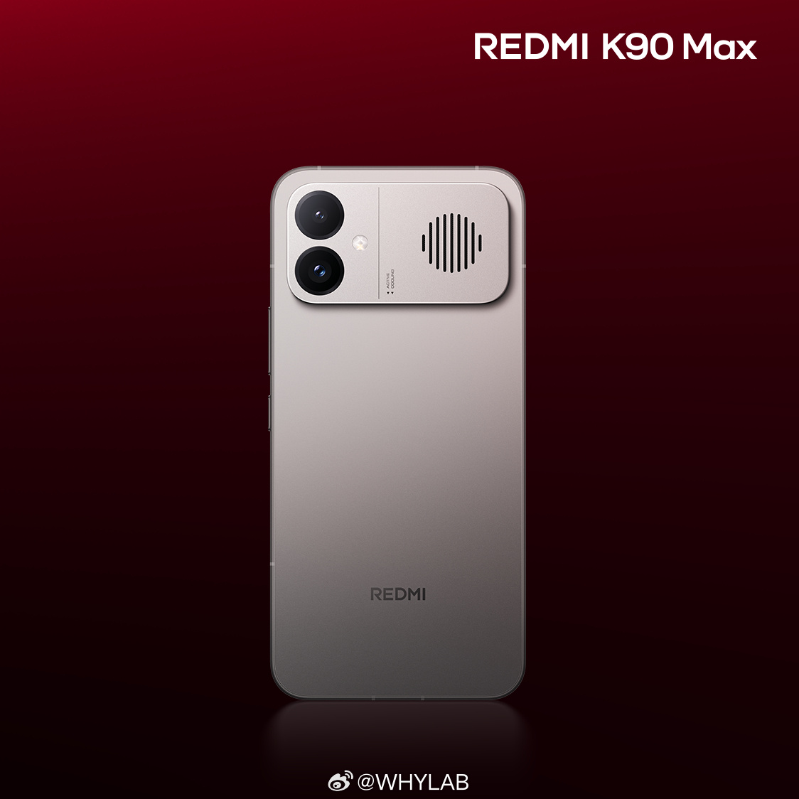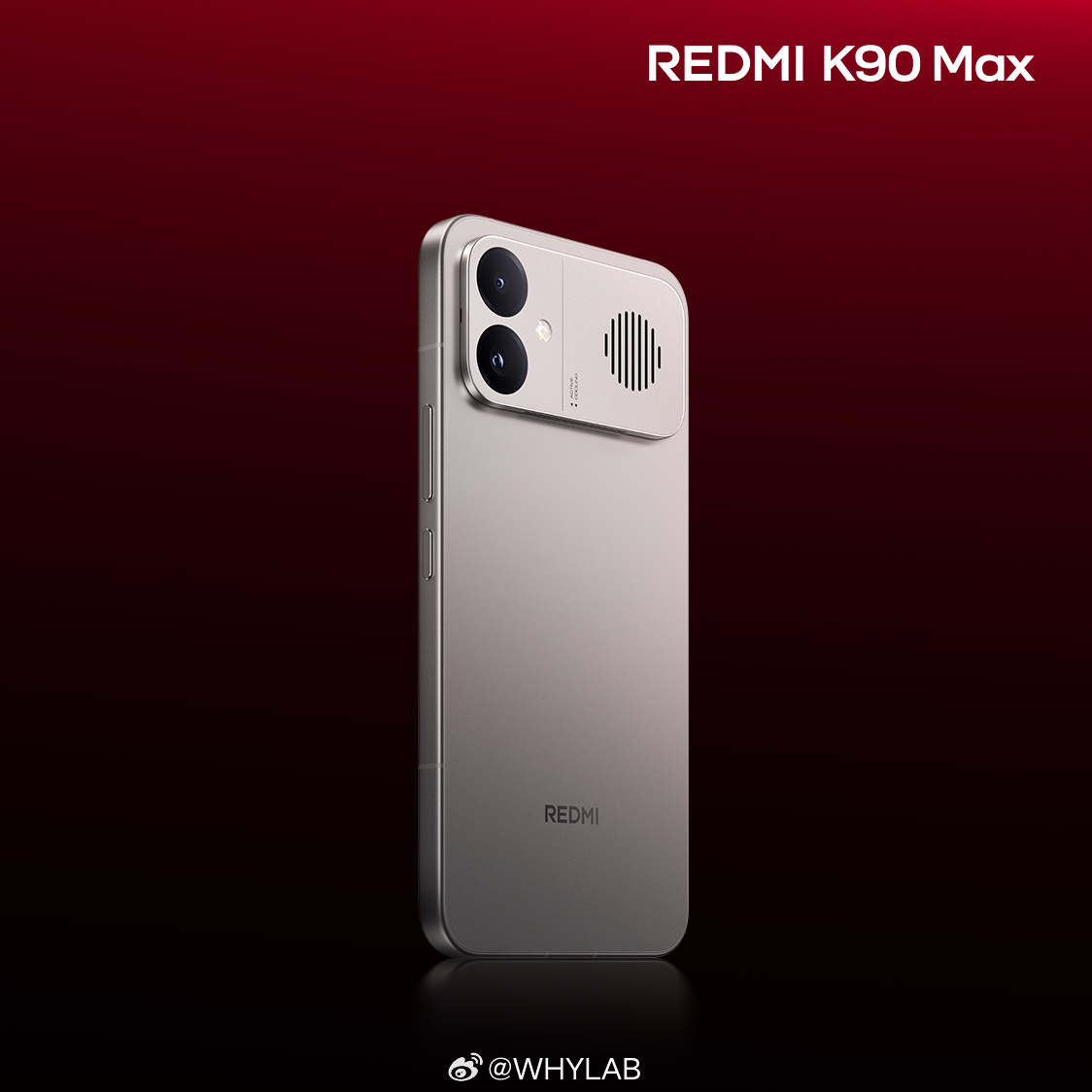 REDMI K90 Max 外观公布,主打色「太空银」,铝合金中框,Deco 处有极简格栅开孔,保证了主动散热风扇的最大进风效率,挺包豪斯美学的。