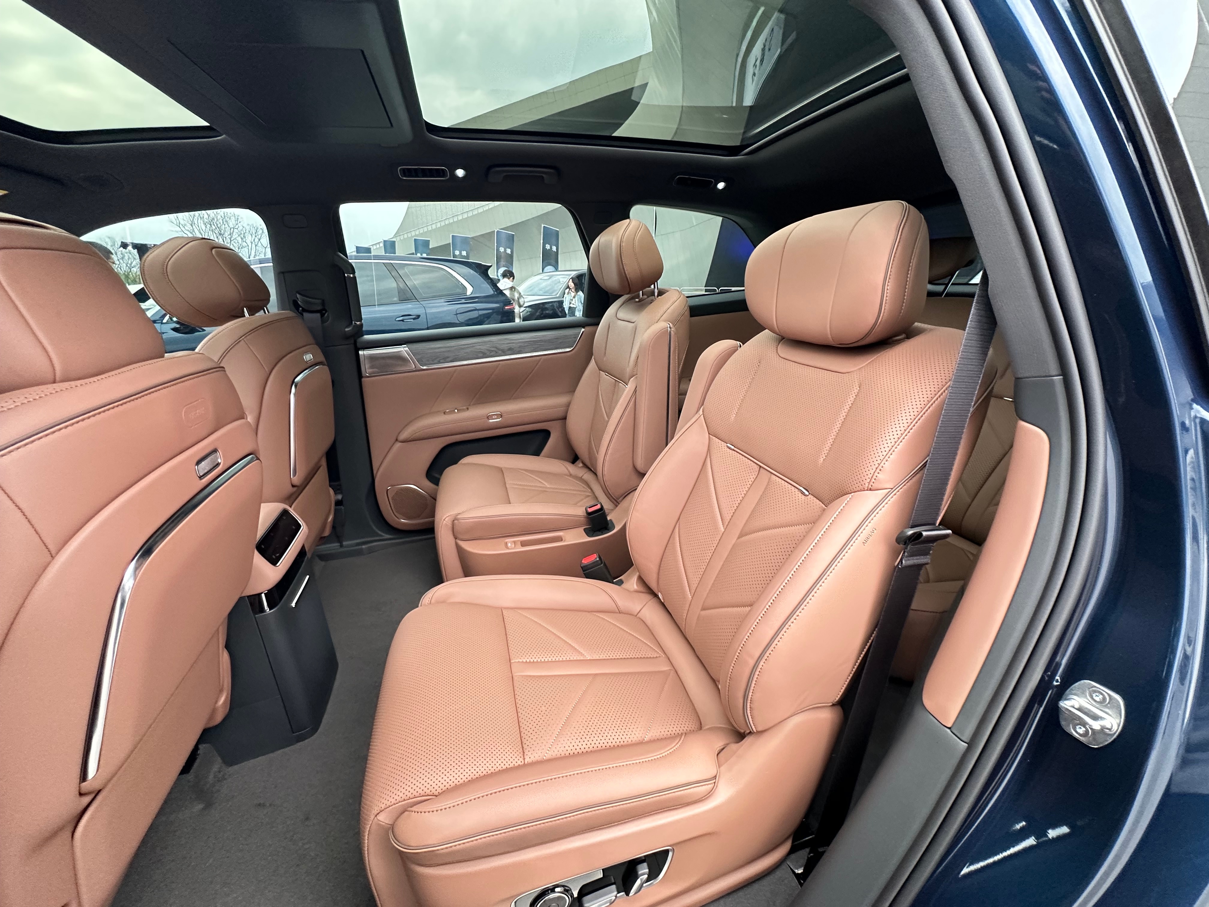 其次就是尺寸了,长5235mm、高1800mm、轴距3105mm,这个尺寸算是日常用车的“极限大小”了。同时新车采用六座布局,适配多孩家庭,第二排独立座椅也能提升舒适性。另外有一个超大下沉后备箱,下沉深度约为15公分,横向宽度约1.1到1.2米,纵深在六座状态下明显优于传统六座SUV,而且在左右两边还偷出了两块隐藏储物空间,在后备箱容积和储物的便利性方面处于同级的第一梯队。当然,在无线快充、冰箱、桌板大彩电等主流配置方面也没有明显的短板,鸿蒙座舱的好用程度大家也是有目共睹了。