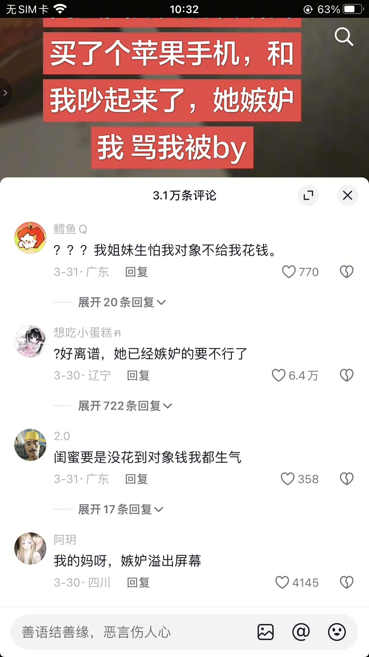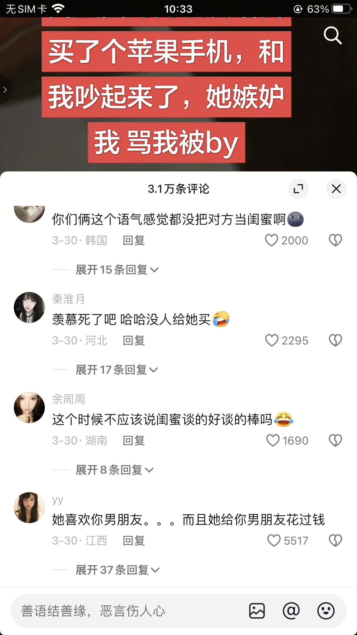 刷到一博主收到的一名女生的投稿,该女生称自己和玩了很多年的闺蜜吵起来了,原因是男朋友给她买了个苹果手机,闺蜜竟骂她被bao养,这到底是怎么回事?