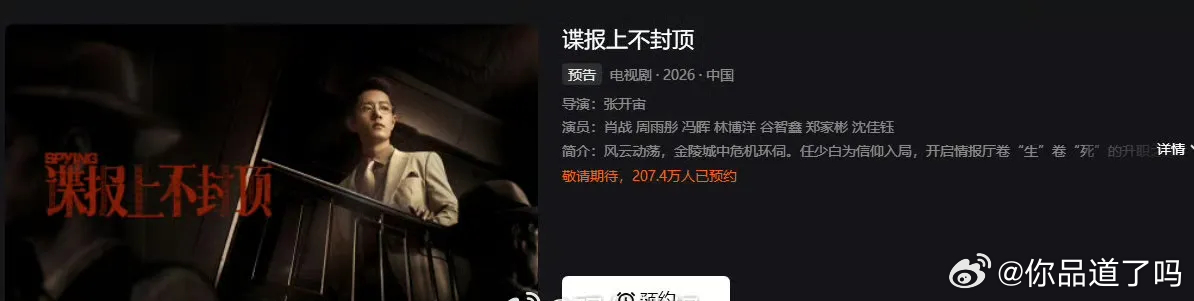 说真的,还得是肖战啊!之前汪海林用那么难听的词诋毁他,现在直接被现实狠狠打脸了😂看看数据就知道有多牛,三部待播剧《谍报上不封顶》《小城良方》《十日终焉》,全网总预约都冲破268万了!而且题材还不重样,谍战紧张刺激、小城故事温暖治愈、无限流悬疑神秘感拉满。不靠炒作,全靠观众实打实的期待值说话,这号召力谁看了不佩服~