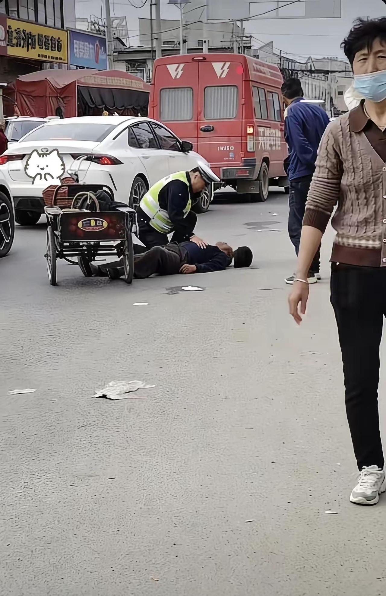 一老人晕倒,杞县执勤交警第一时间上前救助,爱心群众也纷纷伸出援手,为暖心交警和善