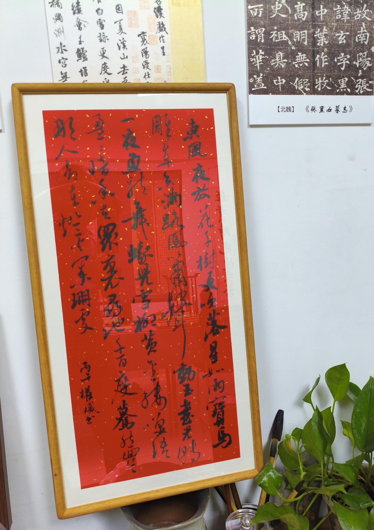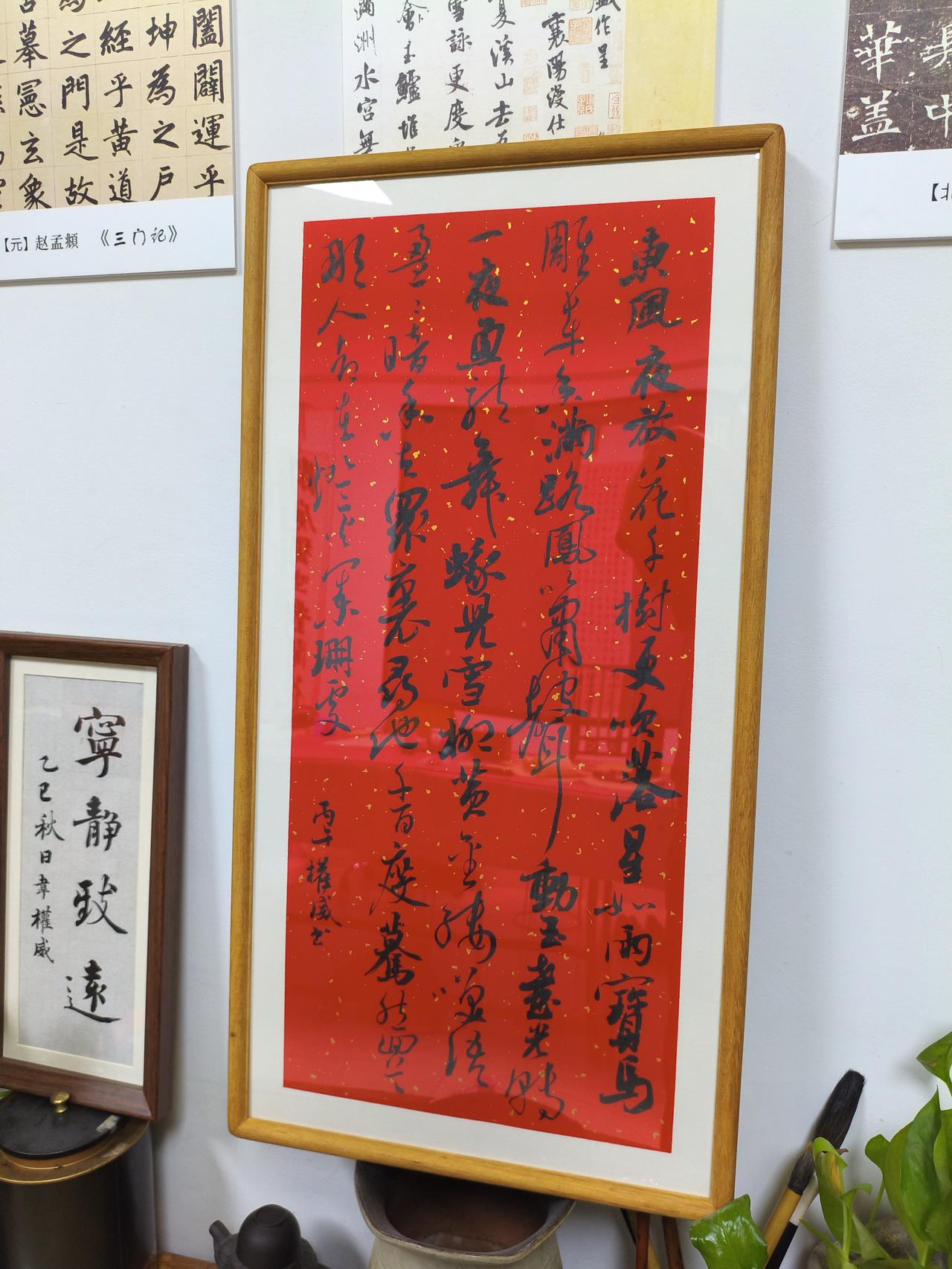 红笺洒金,墨韵生香。一笔行草,写尽辛弃疾《青玉案·元夕》的千古风流:东风夜放花千树,更吹落,星如雨。宝马雕车香满路,凤箫声动,玉壶光转,一夜鱼龙舞。蛾儿雪柳黄金缕,笑语盈盈暗香去。众里寻他千百度,蓦然回首,那人却在,灯火阑珊处。笔走龙蛇间,是词的豪情,是字的风骨,更是藏在笔墨里的中式浪漫。