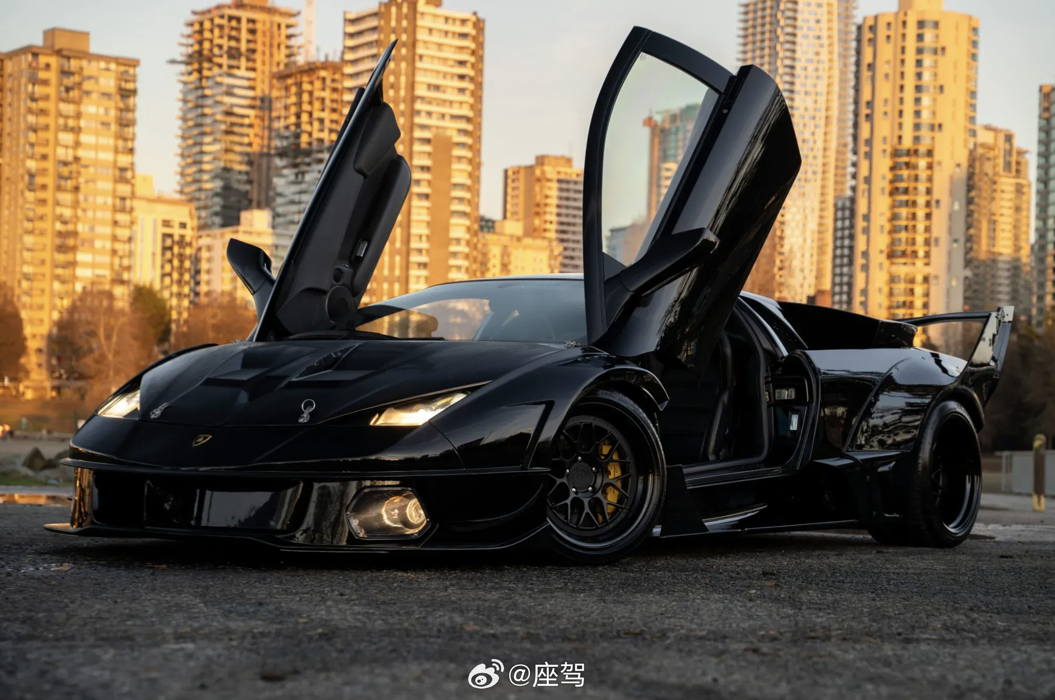 该车搭载了Liberty Walk标志性的Silhouette Works GT Evo宽体套件。前脸借鉴了限量版Reventon的设计,拥有全新保险杠、辅助灯与定制引擎盖。侧面配有夸张的外扩轮拱和巨大的车顶进气口;车尾则换装了定制保险杠、巨大的尾翼、扩散器以及全新尾灯,整体造型犹如一台现实版的“蝙蝠车”。