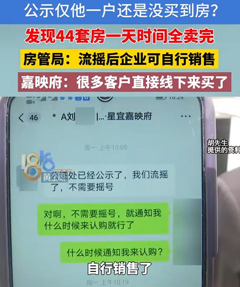 胡先生以为自己走完了全部流程,就等着选房了。结果第二天房子没了,他才被告知还有一条线下销售的通道。这种感觉,就像排队买票排了一整天,快到窗口了,突然有人告诉你,旁边那个没人的窗口才是真正卖票的
