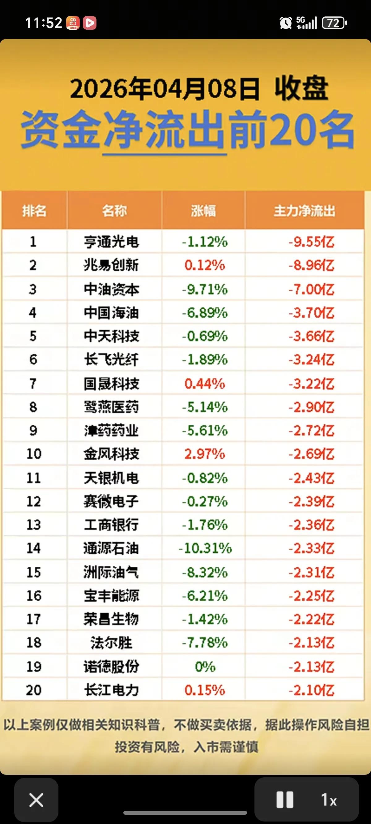 4月8日主力资金动向解析:AI算力与消费电子领涨,光纤光缆及油气板块遭抛售 2026年4月8日,A股市场主力资金呈现显著分化态势。一方面,以中际旭创、蓝色光标为代表的AI算力与消费电子龙头获资金大幅抢筹;另一方面,亨通光电、兆易创新等光纤光缆及半导体个股遭遇资金大幅抛售。整体来看,资金正从前期涨幅较大的传统周期股及部分科技股中撤出,加速向具备业绩确定性的AI核心资产聚集。 📈 主力抢筹核心个股解析 1. 中际旭创(净流入19.87亿元,涨幅8.07%) - 数据表现:全天净流入居首,金额近20亿元,股价大涨超8%。 - 解析:作为全球光模块龙头,中际旭创的巨额净流入直接印证了市场对AI算力基建的高景气度预期。近期谷歌、亚马逊等海外巨头下达大额800G/1.6T光模块订单,公司作为核心供应商,业绩可见度极高。资金的大举抢筹反映出机构对其“量价齐升”逻辑的坚定看好,短期有望成为板块反弹的领头羊。 2. 蓝色光标(净流入18.10亿元,涨幅20.01%) - 数据表现:净流入超18亿元,位居第二,股价涨停(20.01%)。 - 解析:蓝色光标作为营销龙头,近期积极布局AI生成内容(AIGC)业务,通过接入大模型提升广告投放效率。资金的大幅流入反映出市场对“AI+应用”端落地场景的挖掘正在深化。随着AI技术从基建向应用渗透,具备数据积累和场景落地能力的营销公司有望迎来估值重塑。 3. 工业富联(净流入16.52亿元,涨幅4.94%) - 数据表现:净流入超16亿元,位居第三,股价上涨近5%。 - 解析:工业富联是AI服务器代工龙头,深度绑定英伟达、微软等客户。近期腾讯、阿里等国内云厂商加码采购AI服务器,公司作为核心受益者,订单饱满。资金的大举买入反映出市场对其“AI服务器+云计算”双轮驱动逻辑的认可,短期有望延续强势。 📉 主力出逃核心个股解析 1. 亨通光电(净流出9.55亿元,跌幅1.12%) - 数据表现:全天净流出居首,金额超9亿元,股价下跌超1%。 - 解析:与中际旭创的巨额流入形成鲜明对比,亨通光电遭遇资金大幅抛售。这反映出通信设备板块内部的“高低切换”:资金从前期涨幅较大的光纤光缆个股中撤出,转向更具业绩弹性的光模块龙头。短期需警惕板块内部分化加剧带来的调整压力。 2. 兆易创新(净流出8.96亿元,涨幅0.12%) - 数据表现:净流出近9亿元,位居第二,股价微涨0.12%。 - 解析:兆易创新作为存储芯片龙头,近期受益于存储芯片涨价逻辑。但资金的大幅流出反映出市场对其短期涨幅过大的担忧,部分获利盘选择兑现。此外,半导体板块整体估值已处历史高位,资金存在“恐高”情绪,短期或面临回调压力。 3. 中油资本(净流出7.00亿元,跌幅9.71%) - 数据表现:净流出7亿元,位居第三,股价大跌近10%。 - 解析:中油资本作为多元金融股,近期受益于“中字头”行情。但资金的大幅流出反映出市场对“中字头”行情的持续性存疑,部分资金选择获利了结。此外,公司基本面缺乏实质性改善,短期股价或面临较大调整压力。