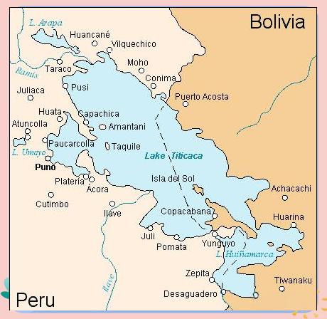 的的喀喀湖为秘鲁和玻利维亚所共有,其中40%面积为秘鲁所有,另外的60%面积为玻利维亚所有。该湖是美洲印第安人文明的发源地之一,拥有丰富的自然和人文景观,如太阳岛等。