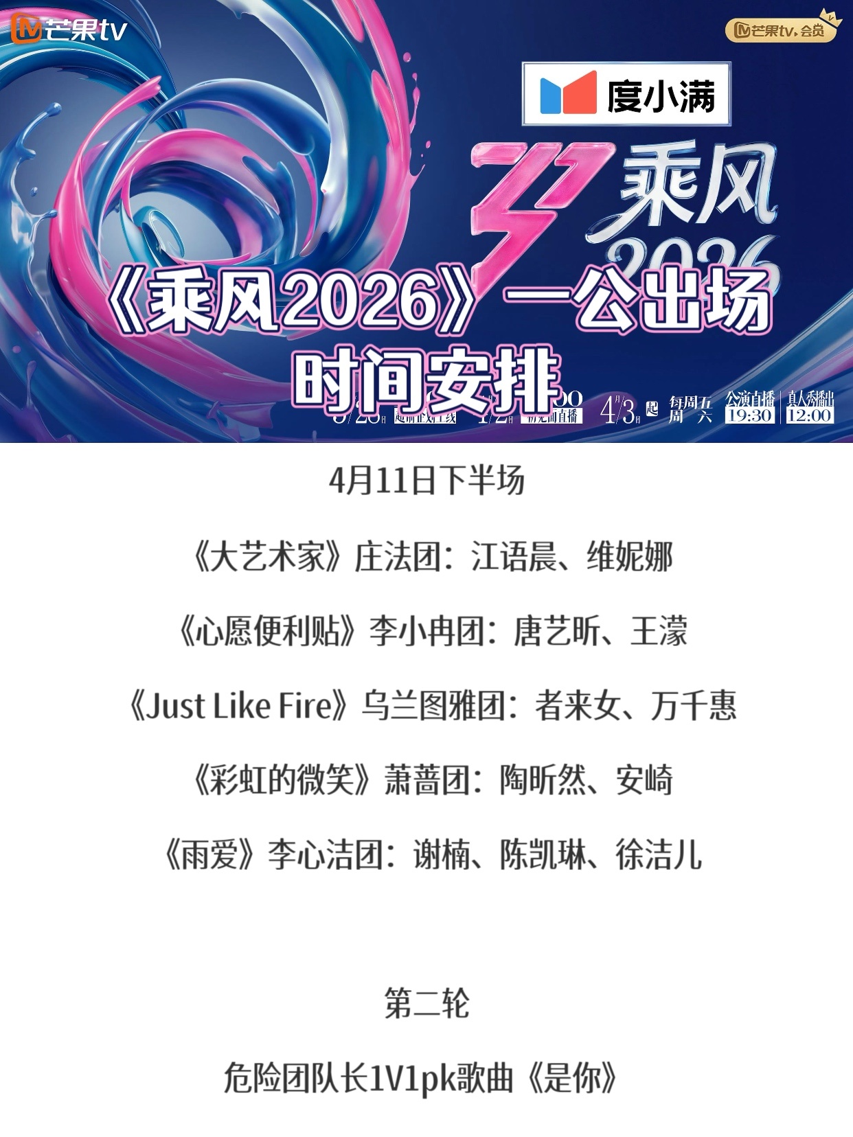 乘风2026一公小考《乘风2026》一公出场时间安排,非上场顺序~