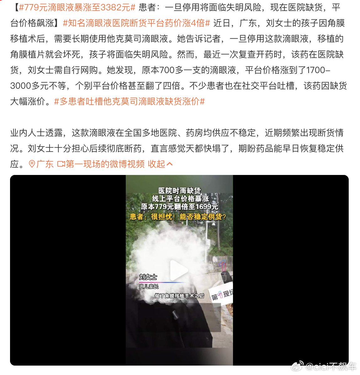 希望国产的替代药能早点出现779元滴眼液暴涨至3382元
