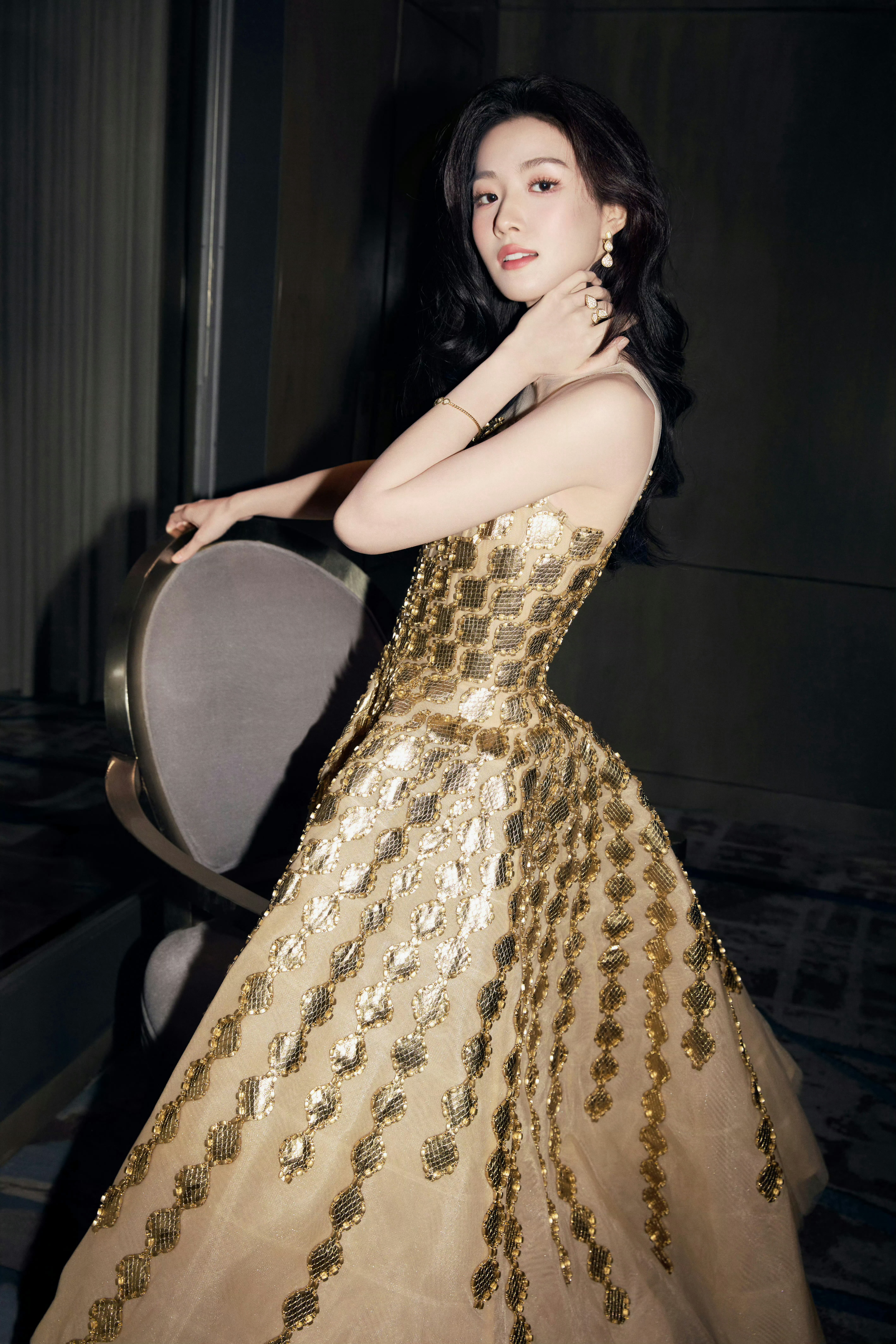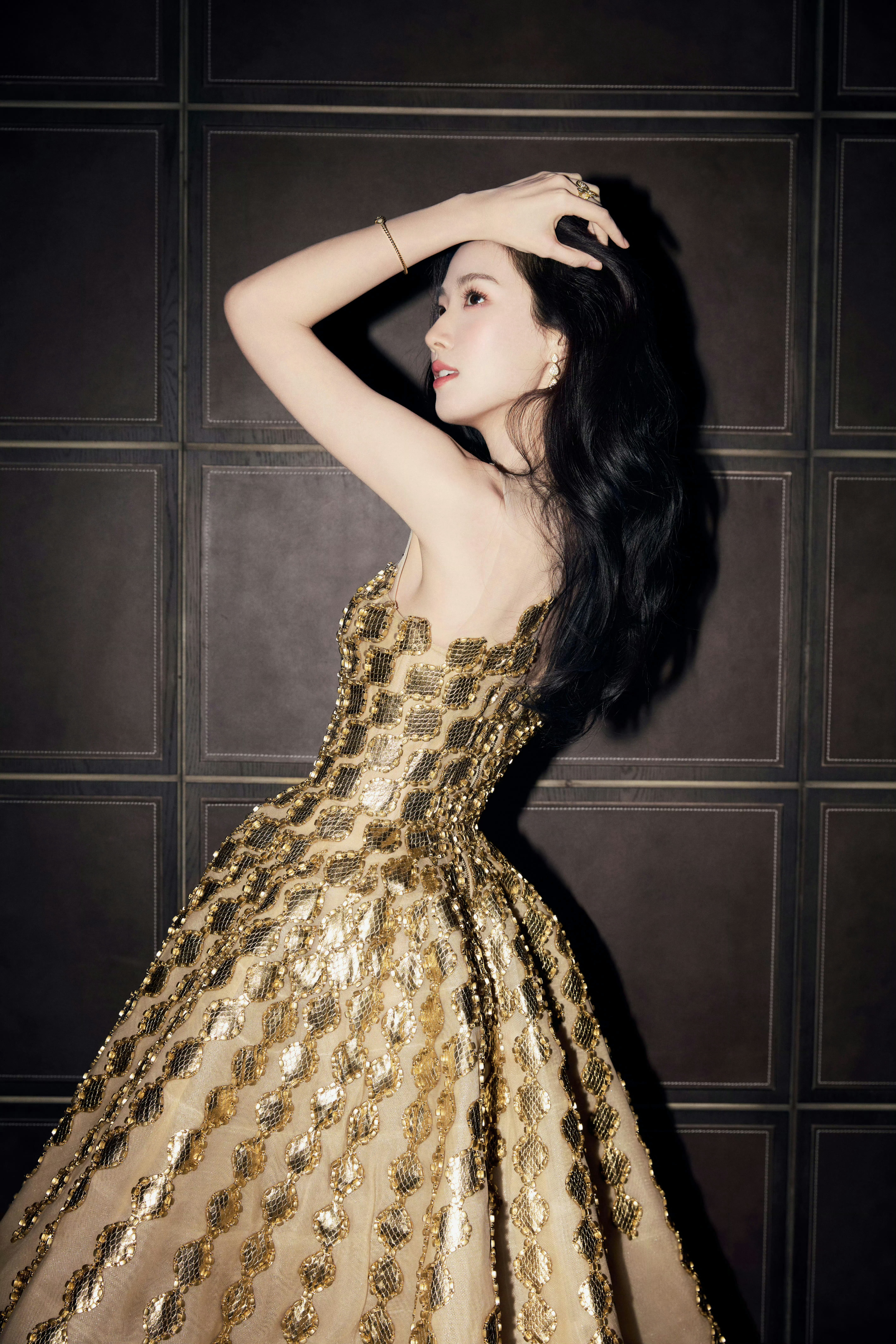 杨幂x金色披肩礼服&佩戴黄金珠宝气质非凡