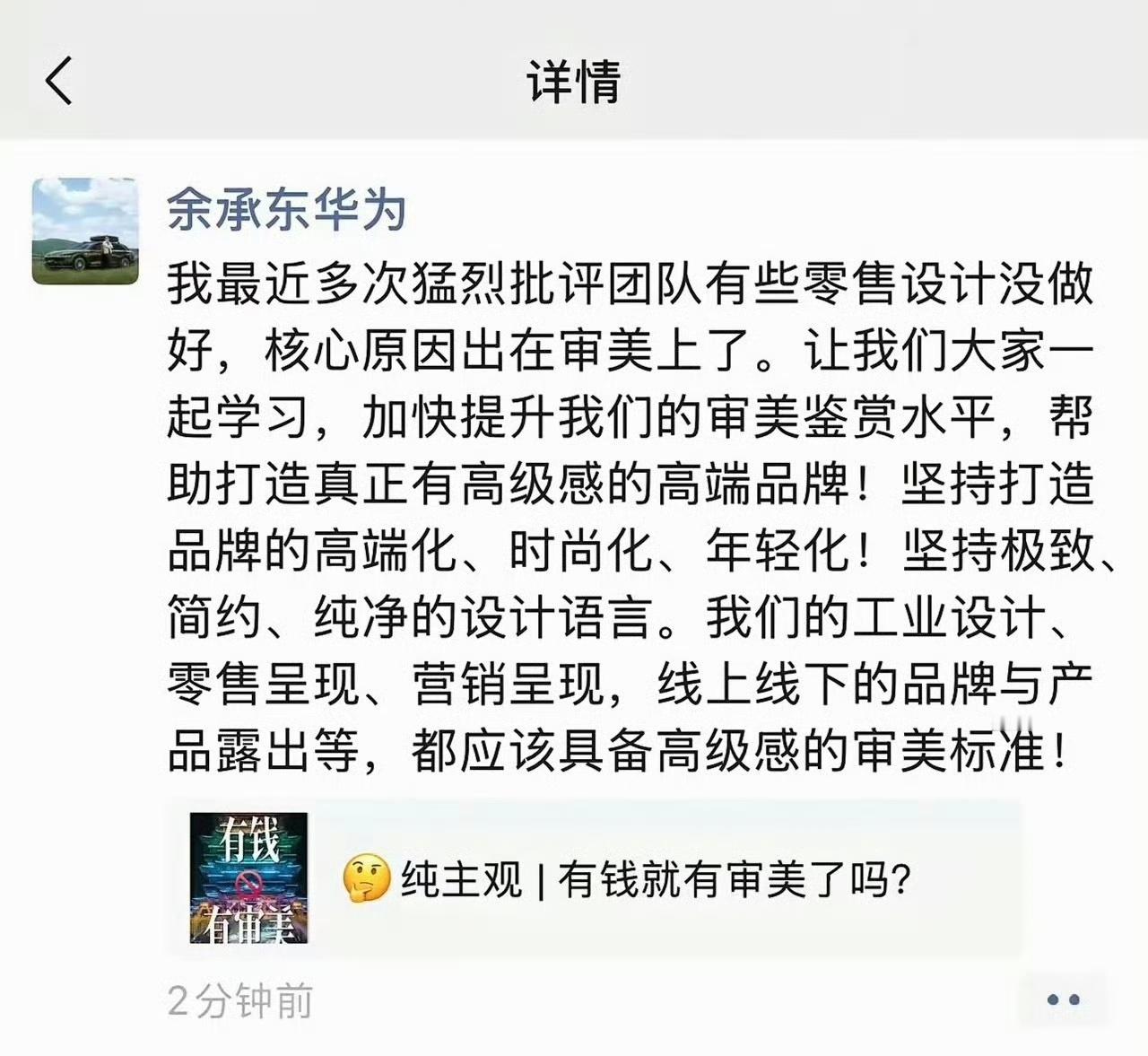 余承东猛批团队设计不高级如果团队没有新的设计人才输入,审美问题或许很难摆脱,另外