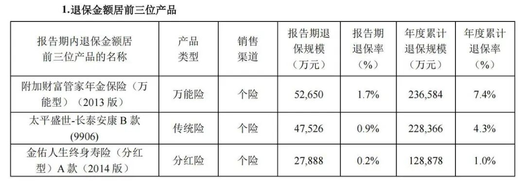 偿付能力报告披露,太平洋人寿退保金额排名前三位的三款产品2025年度的累计退保规模合计高达59.39亿元,这三款产品的销售渠道均为个险渠道。