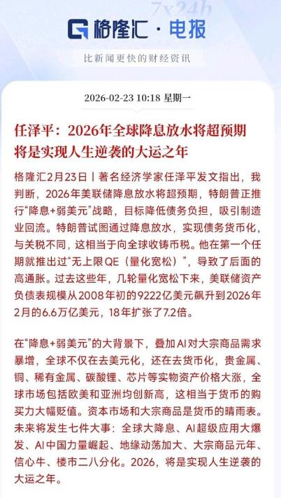 这背后,藏着一个被经济学家反复提及的信号:2026 年,全球资本市场将迎来新一轮 “大放水”,普通人想逆袭,核心就是把 “死钱” 换成 “活资产”。