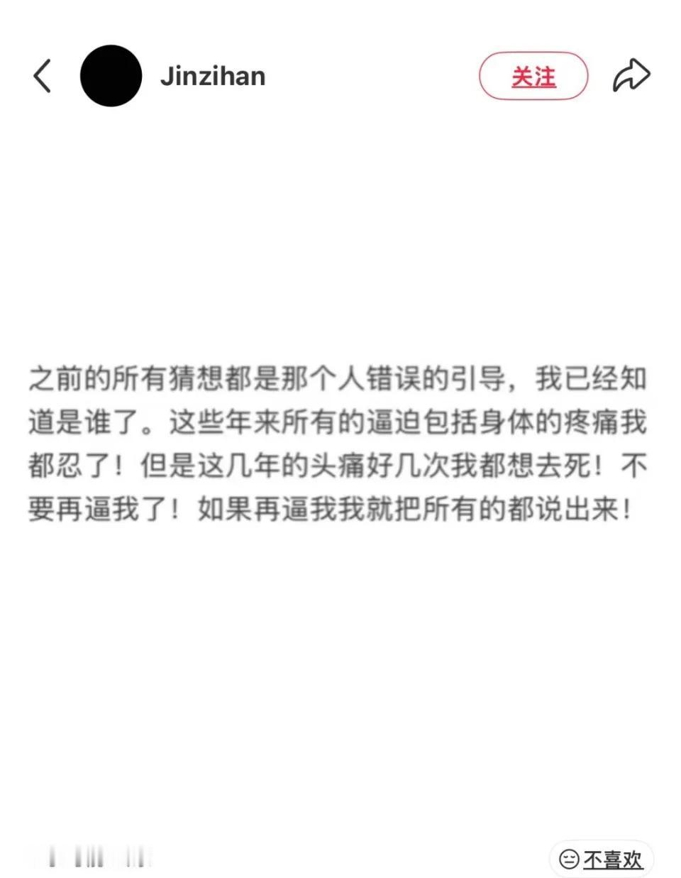 金子涵到底怎么了,突然喊话“别再逼我”。
