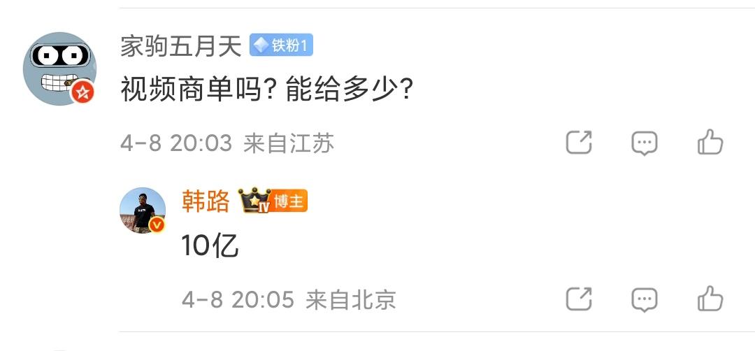 网友:视频是商单吗?能给多少?
