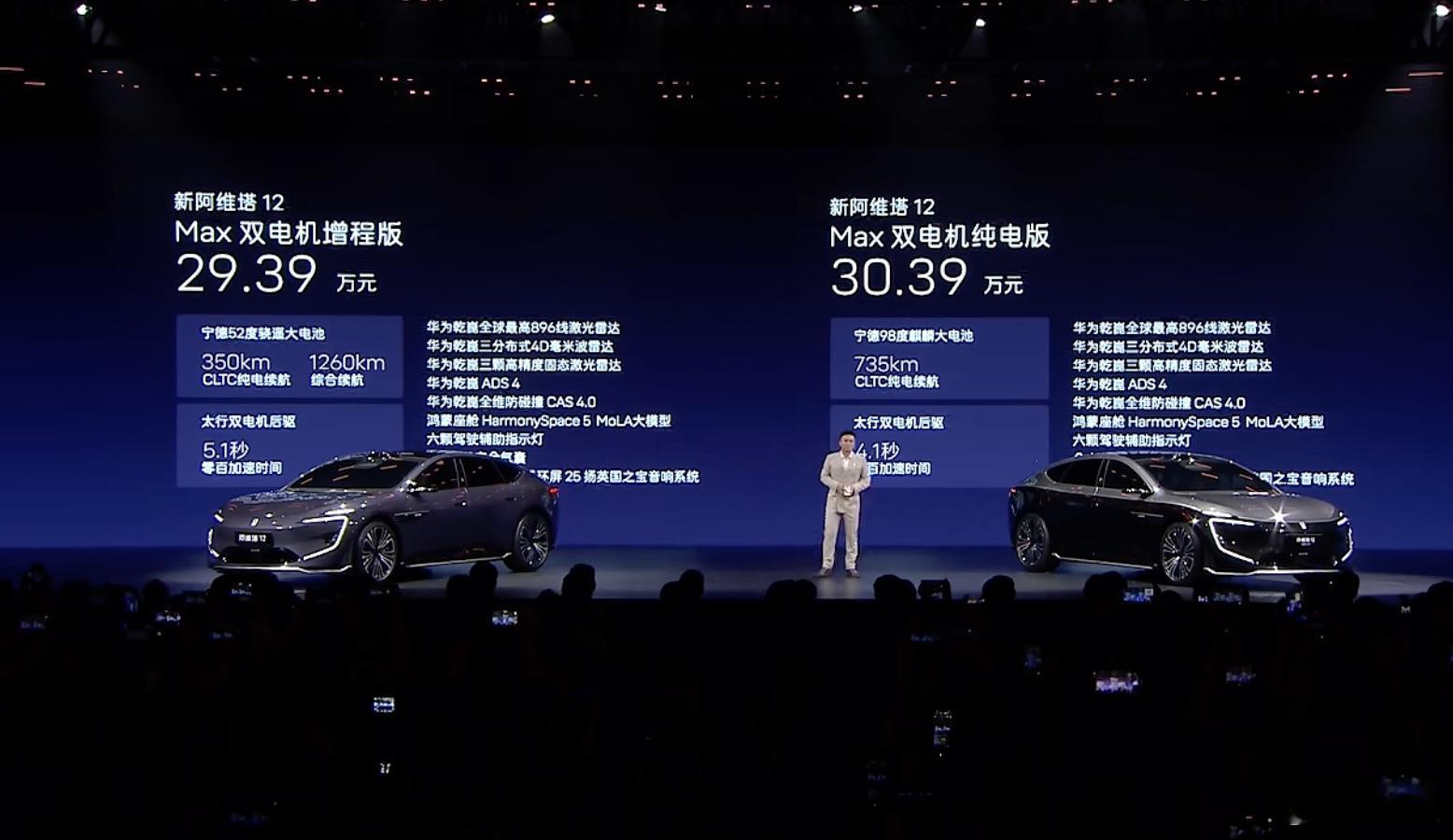 阿维塔12正式上市,起售价仅为29.39 万元起。