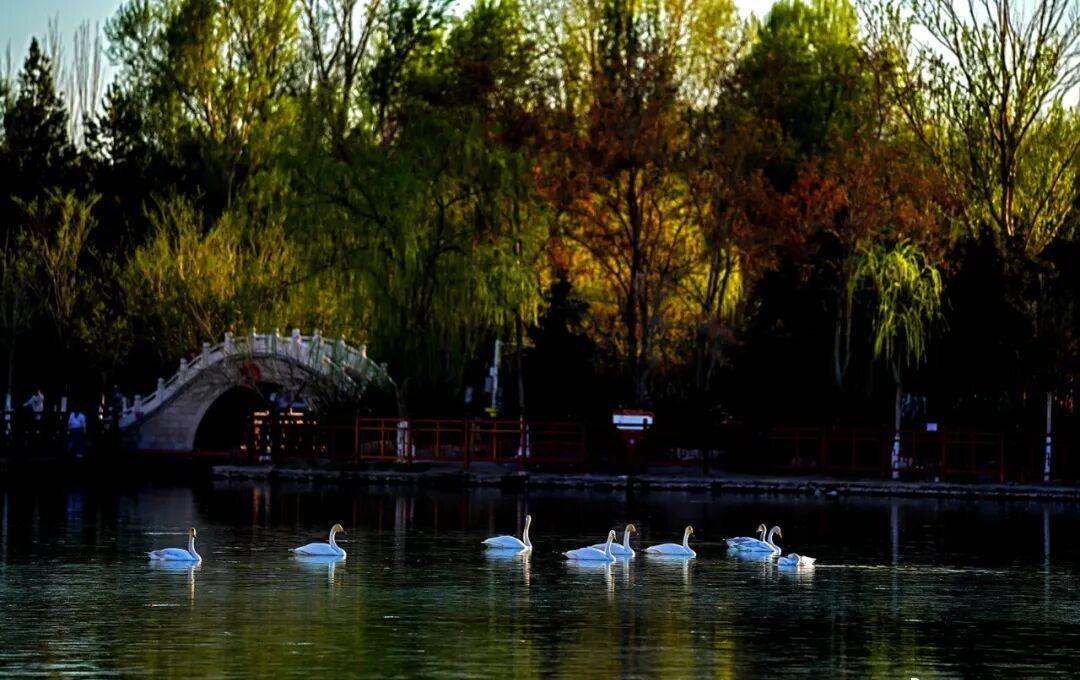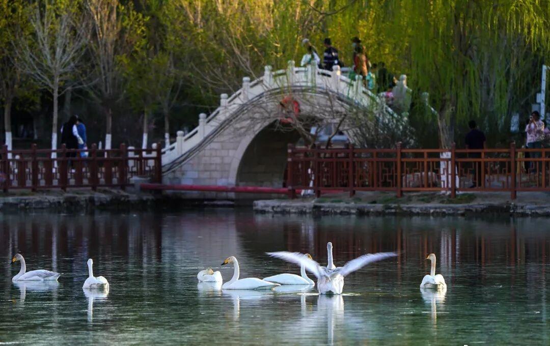 【惊喜!9只天鹅优雅现身哈密石油基地公园,邂逅春日生态之美】