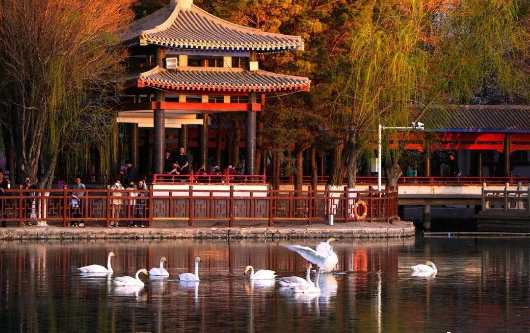 春日石油基地公园生机盎然,杏花、桃花等竞相绽放,与澄澈湖光构成绝美画卷。湖水澄澈,水草轻摇,鱼虾自在嬉戏