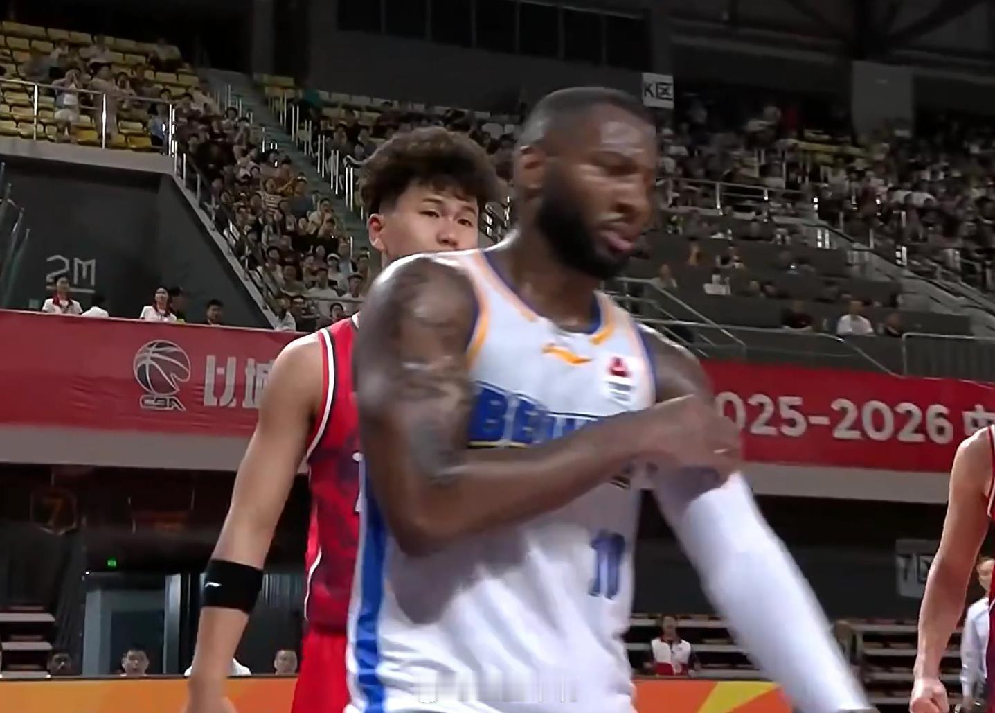 广州男篮vs北京男篮 上半场的杰曼,哈哈,半场21分!你盖我两分,还看我,送你压