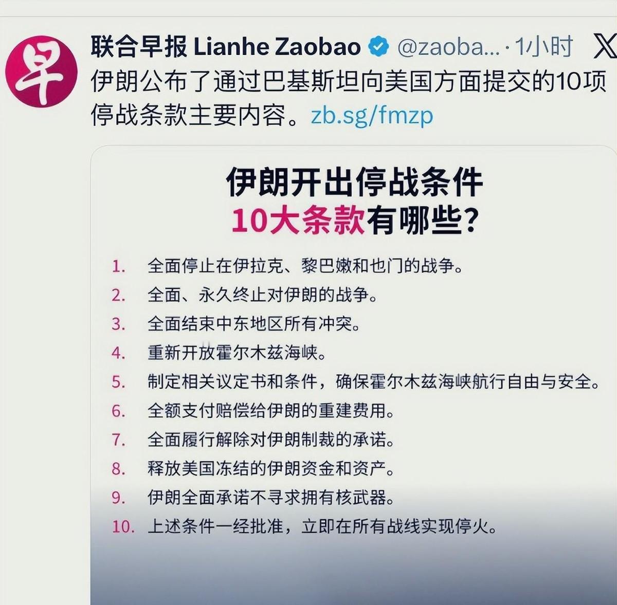 但真正把华盛顿逼回谈判桌的,是德黑兰直接拍在桌上的那十条硬核方案:清空所有制裁、军队全面撤出、公开登报道歉、外加真金白银的赔偿。