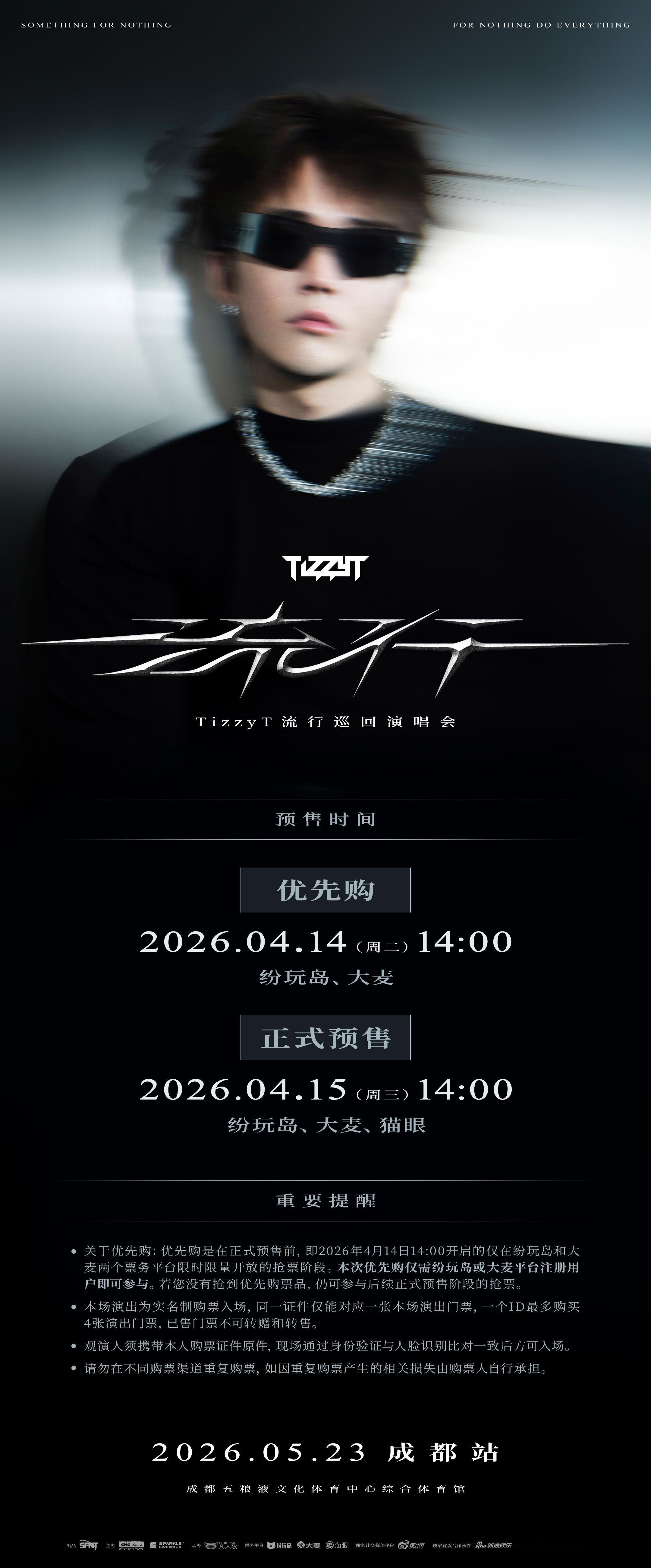 📍 成都站📅 演出时间:2026年5月23日 19:00🏟️ 演出场地:成都五粮液文化体育中心综合体育馆TizzyT流行成都演唱会