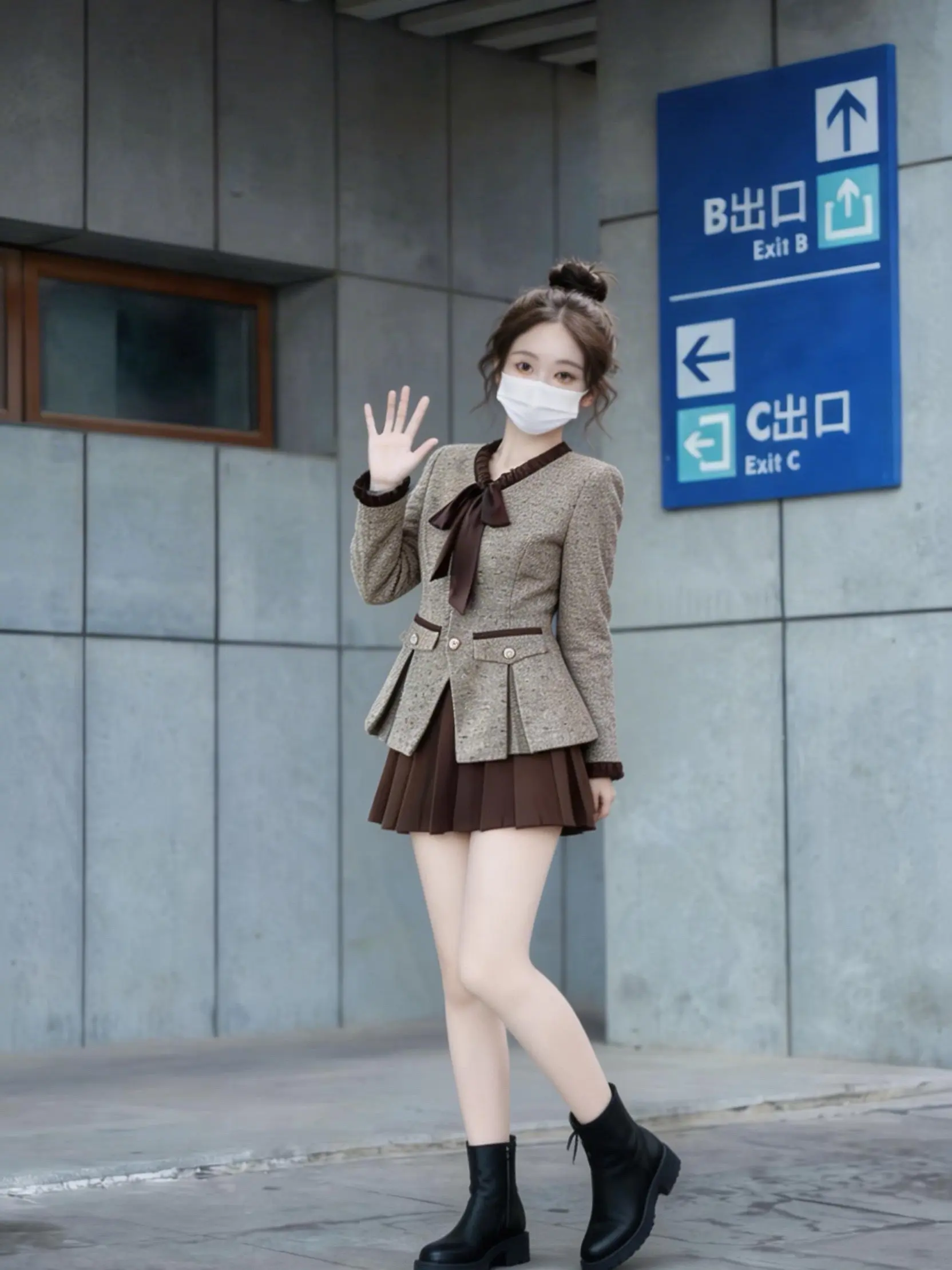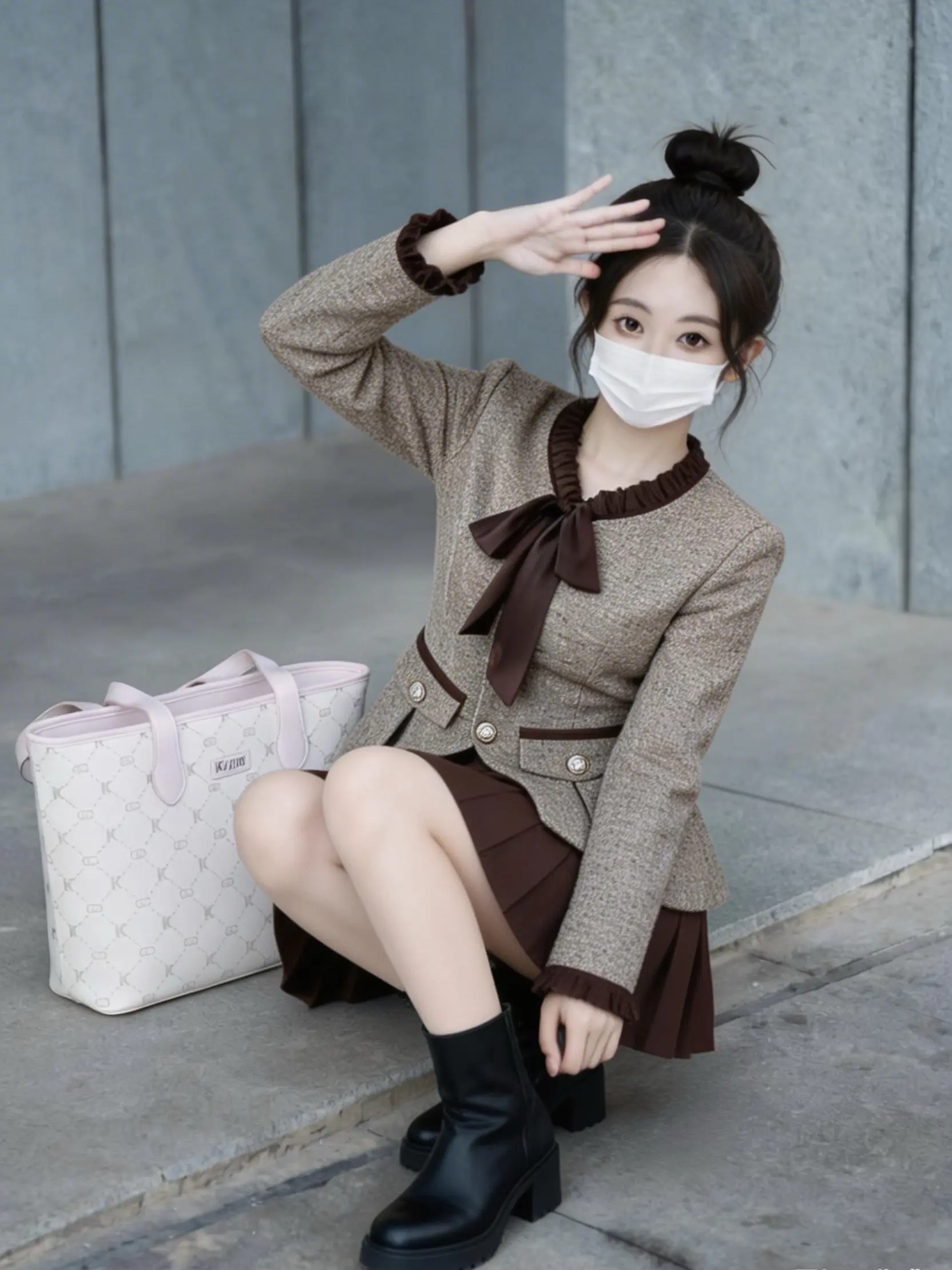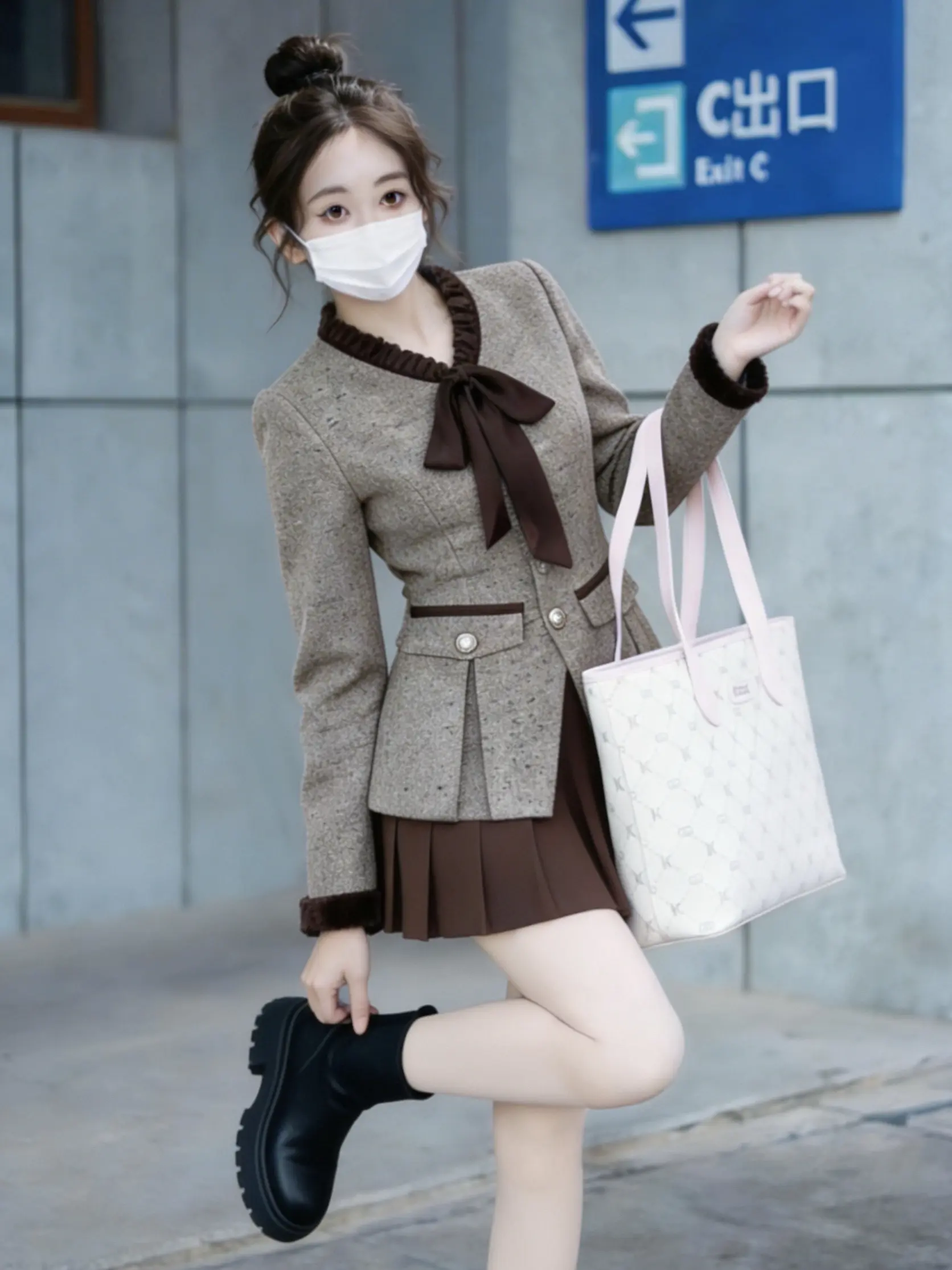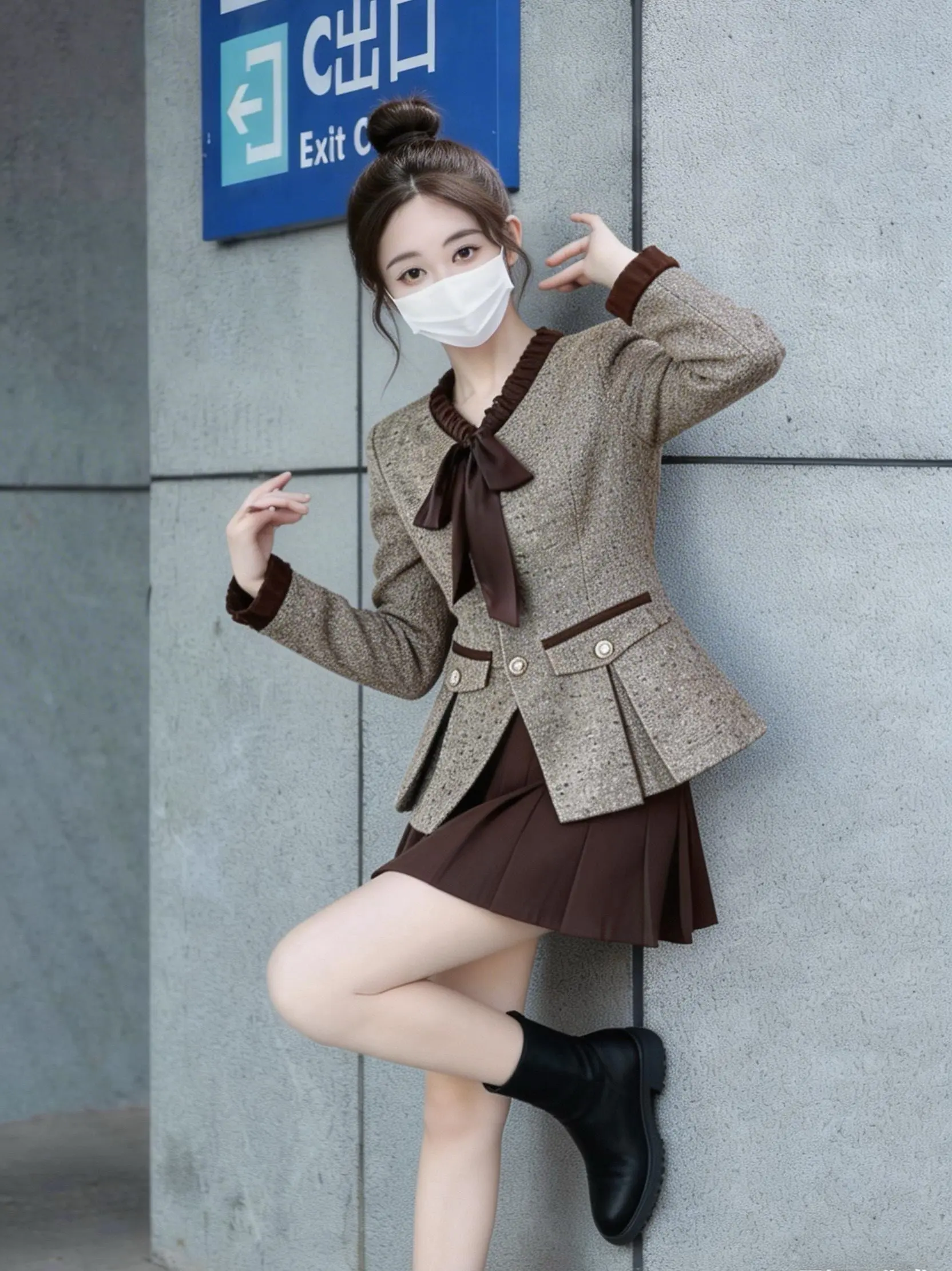学院风天花板!这套JK西装也太显嫩了吧。谁懂啊!这件咖色小西装+百褶裙真的太有韩剧女主那味儿了~