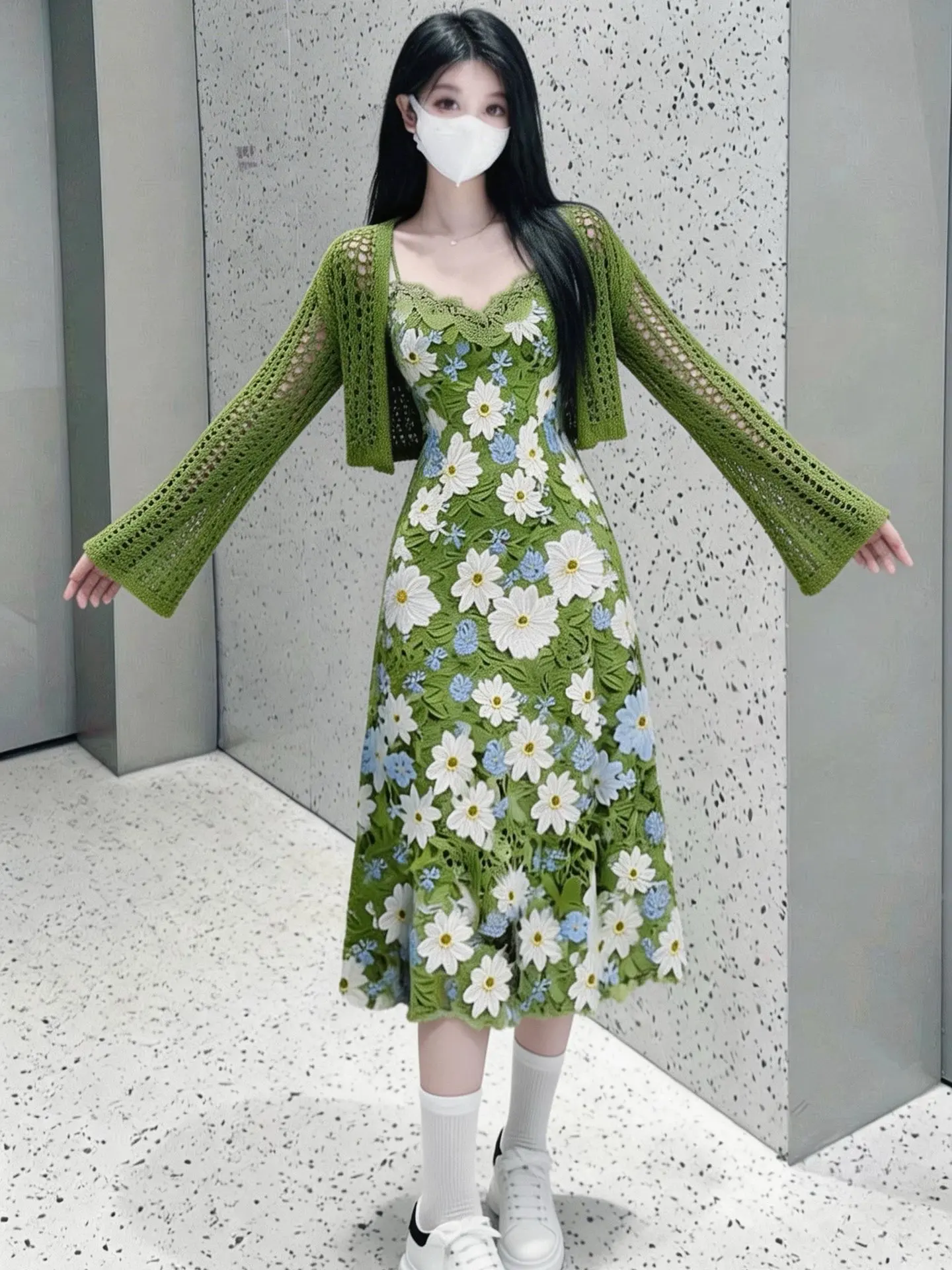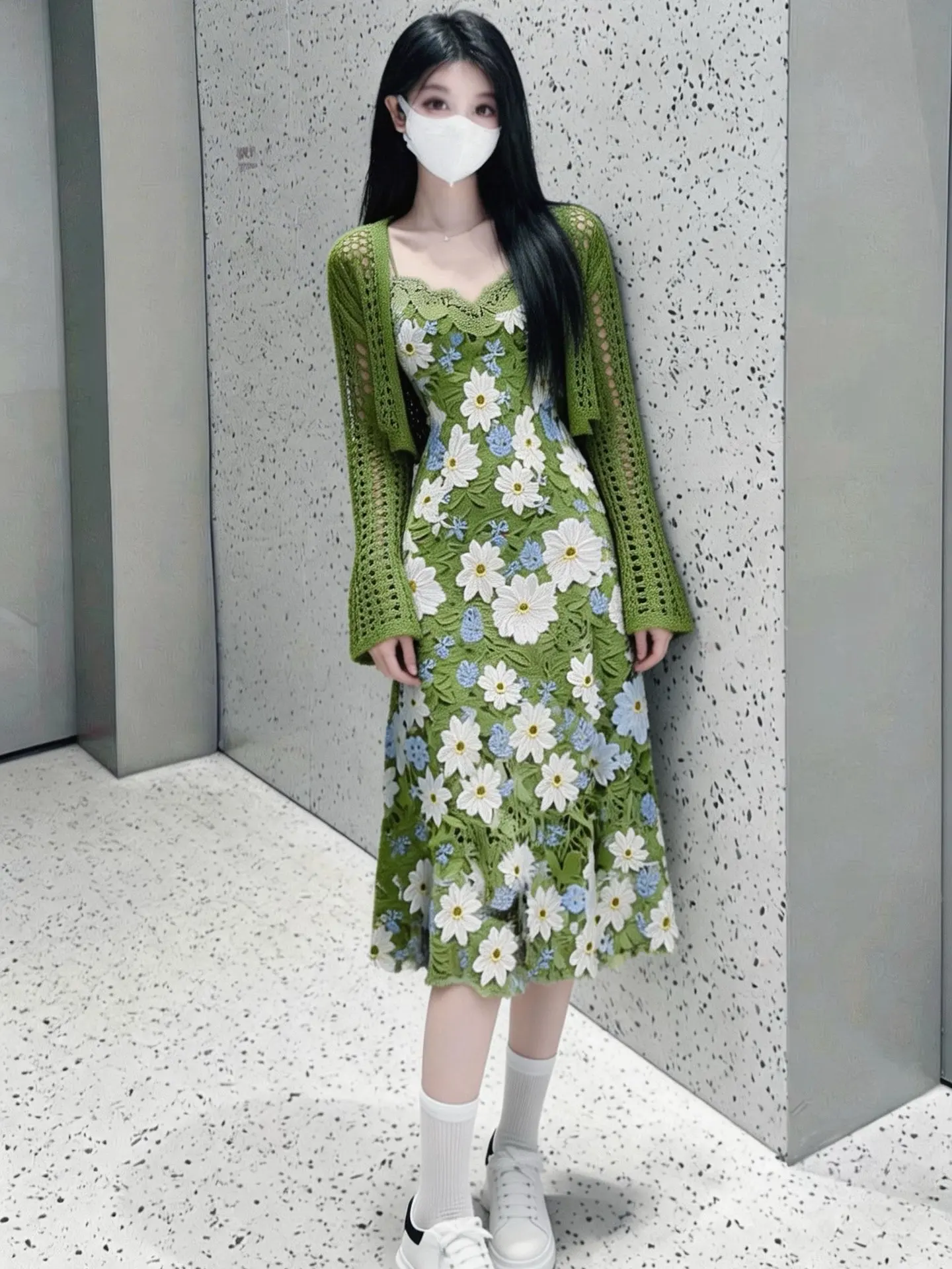 温柔到骨子里的绿色碎花裙,约会穿绝了✨。谁懂啊!这件绿色针织开衫+碎花裙,氛围感直接拉满💚