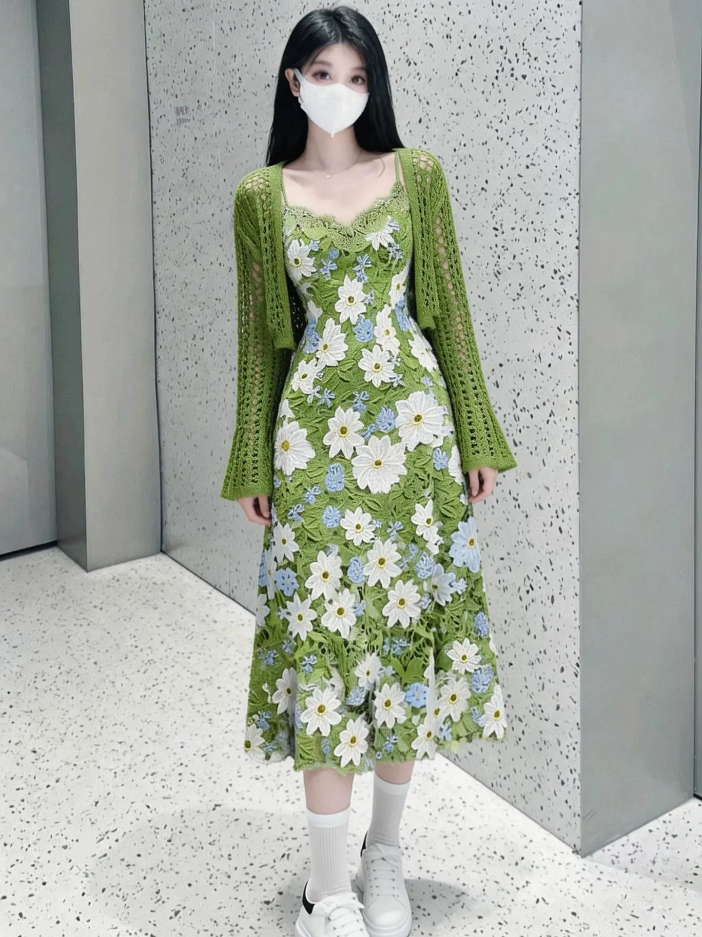 温柔到骨子里的绿色碎花裙,约会穿绝了✨。谁懂啊!这件绿色针织开衫+碎花...