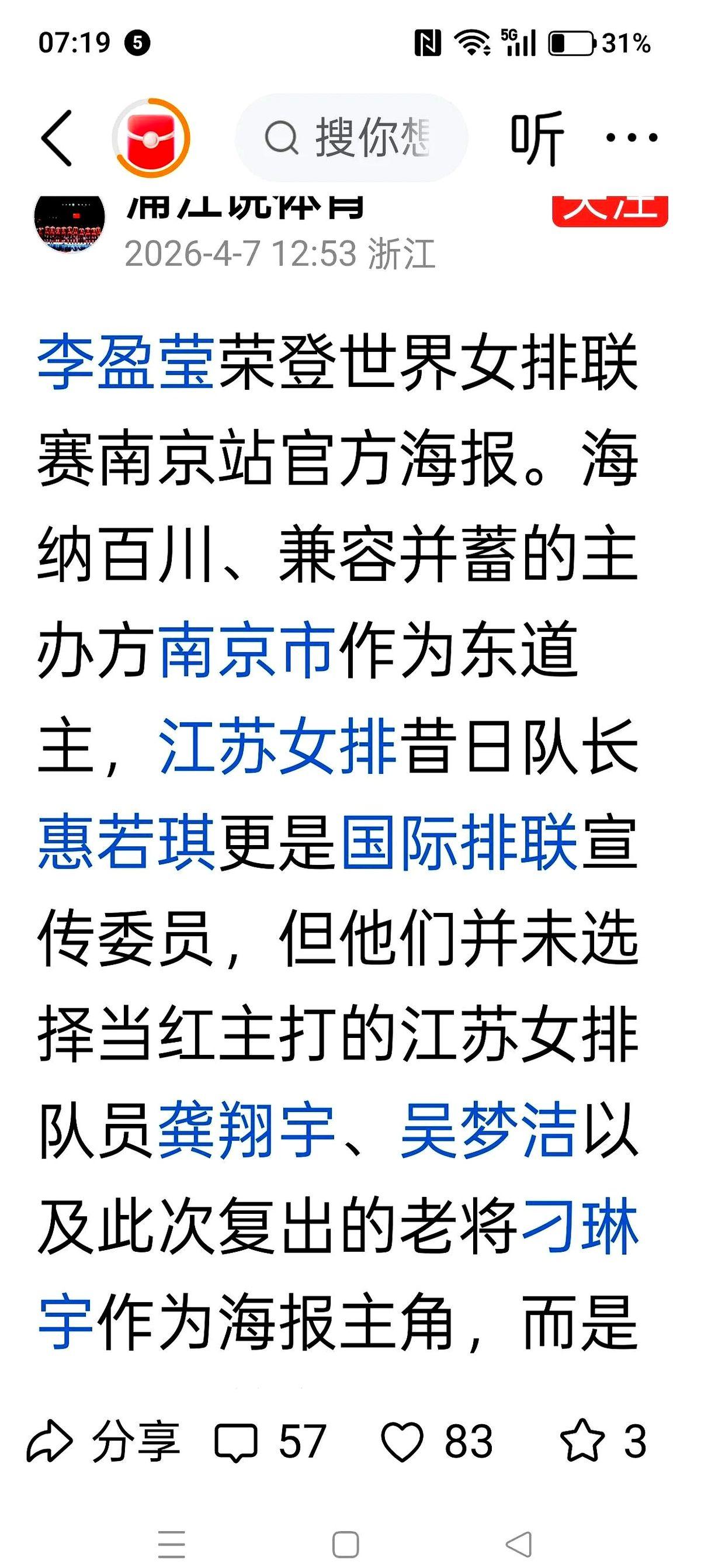 但世界排联在南京搞活动,用她做宣传,这不挺正常吗?她影响力大啊,除了朱婷,她就是中国女排的“脸面”之一。以前她也多次上官方海报,这体现的是商业价值和国际认可度。