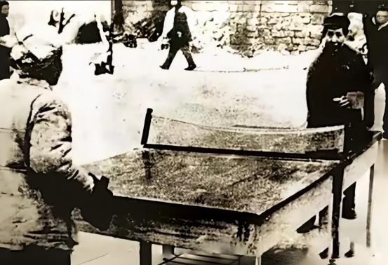 1944年,毛主席患上了肩周炎,俗称“五零肩”,保健医生马海德为他想个办法,找当地木匠做个简易乒乓球台,连球拍也是木匠做的,球网是临时凑的。