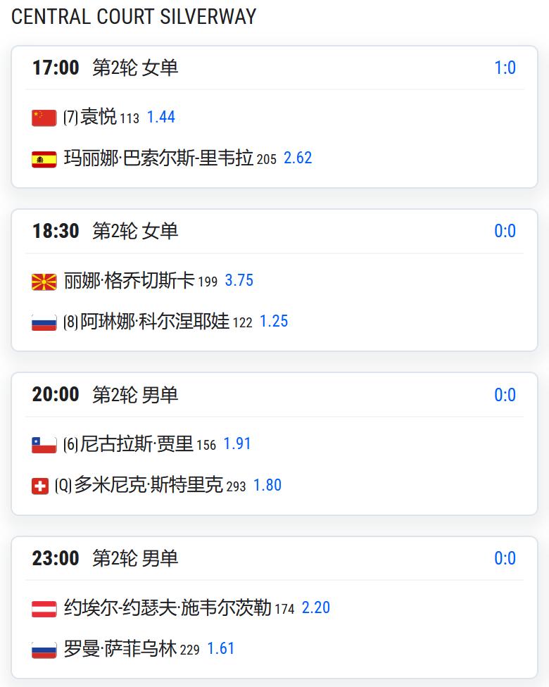 WTA125马德里,女单第二轮,袁悦将对阵本土球员巴索尔斯-里维拉;