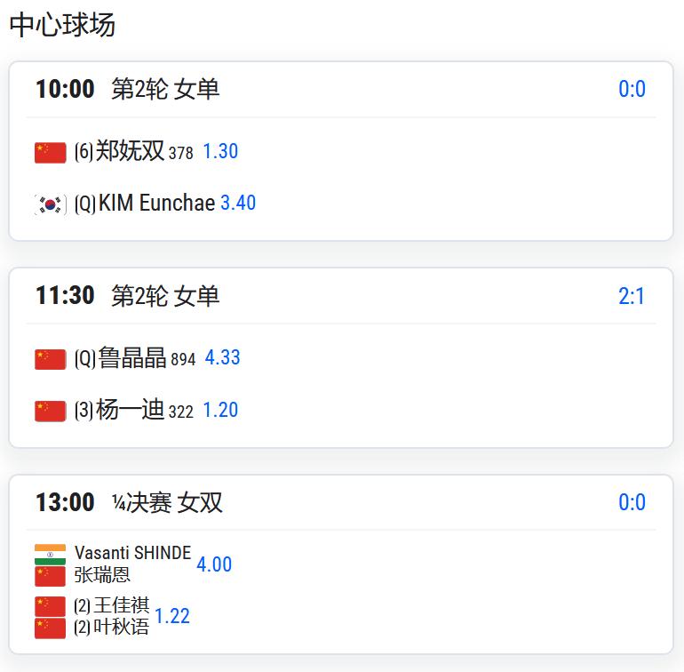 女双四分之一决赛,王佳祺/叶秋语将对阵张瑞恩/辛杜;