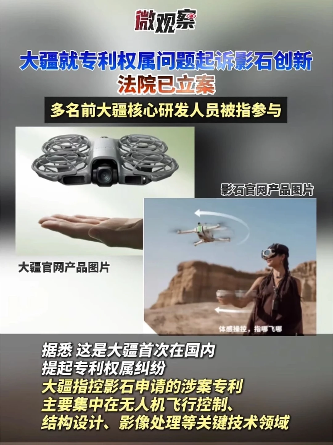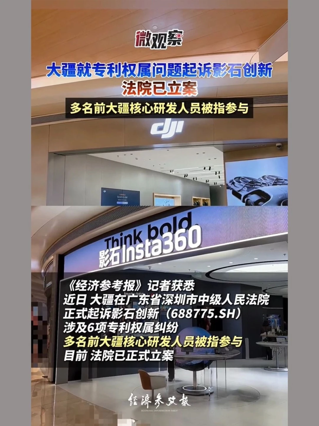 大疆已正式在深圳中院起诉影石,案由主要是6项专利权属纠纷,目前有关部门已经立案了,这还是大疆首次在国内提这类诉讼,这架势应该是硬刚到底了!