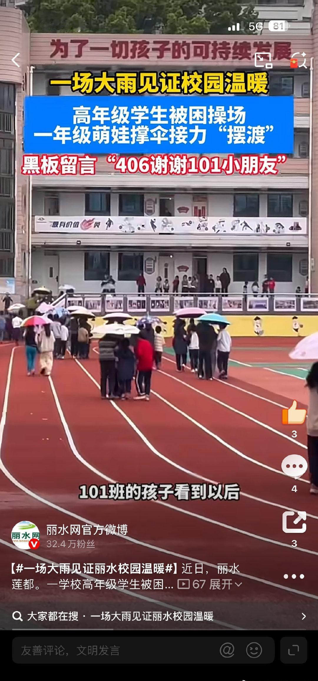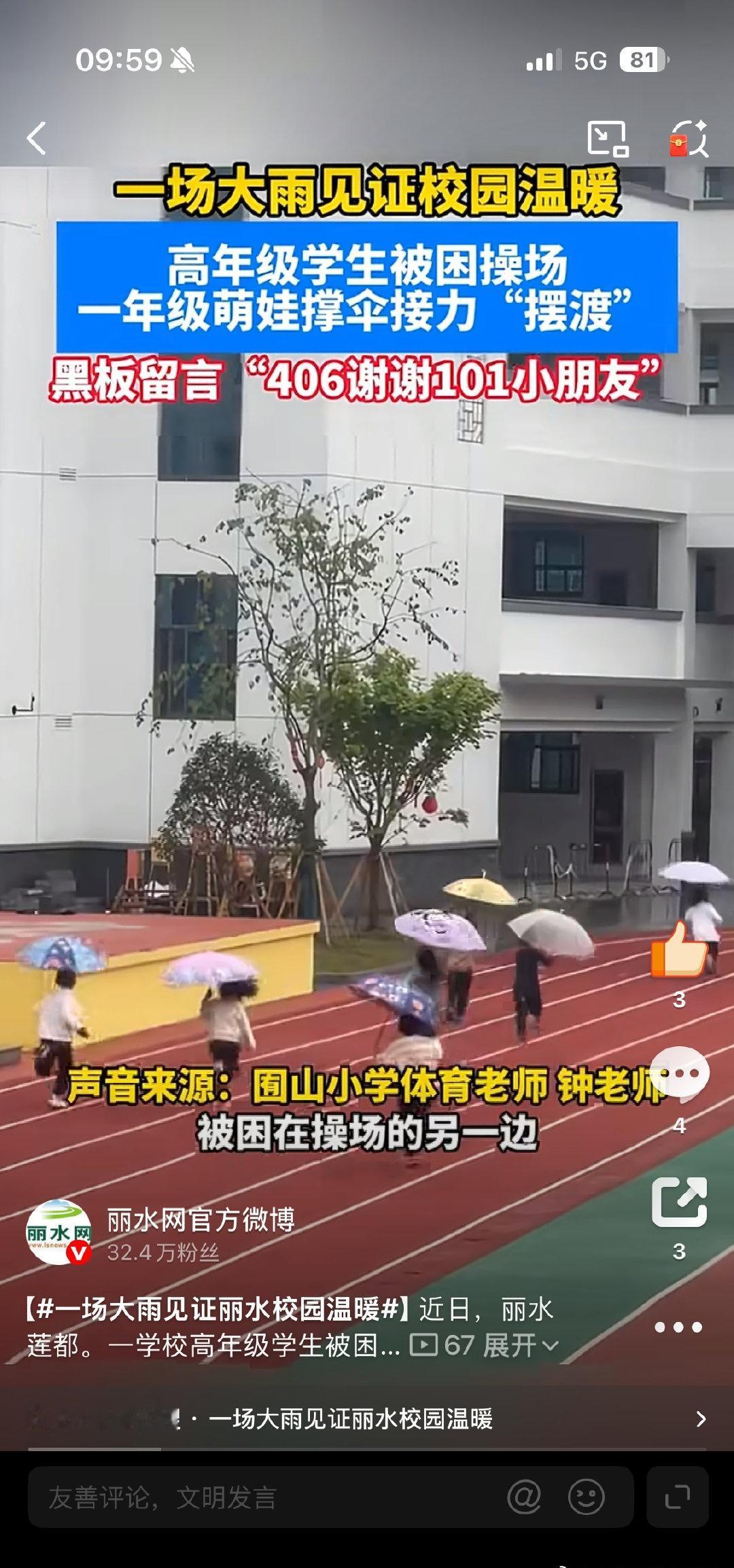 一场大雨见证丽水校园温暖从孩子身上看到一座城的温度,丽水真的太有爱了