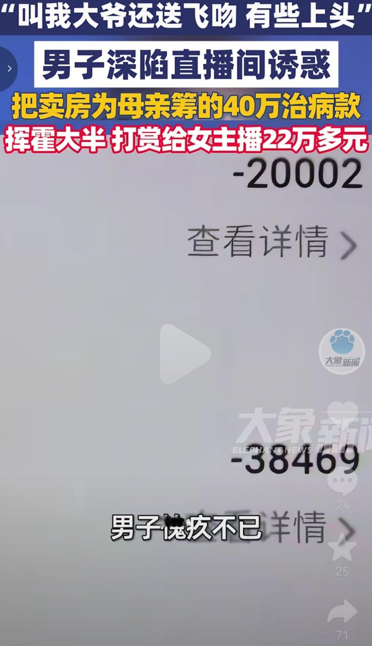 头皮发麻!河北保定一位大哥,被直播间的“甜言蜜语”迷了心窍,把卖房给母亲治病的40万救命钱,挥霍了大半!
