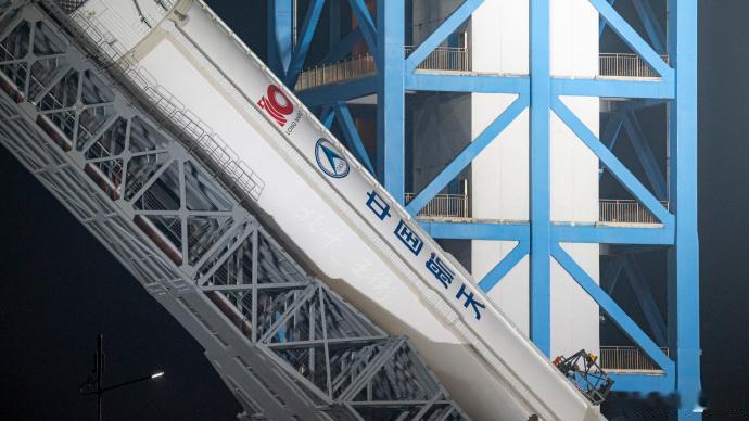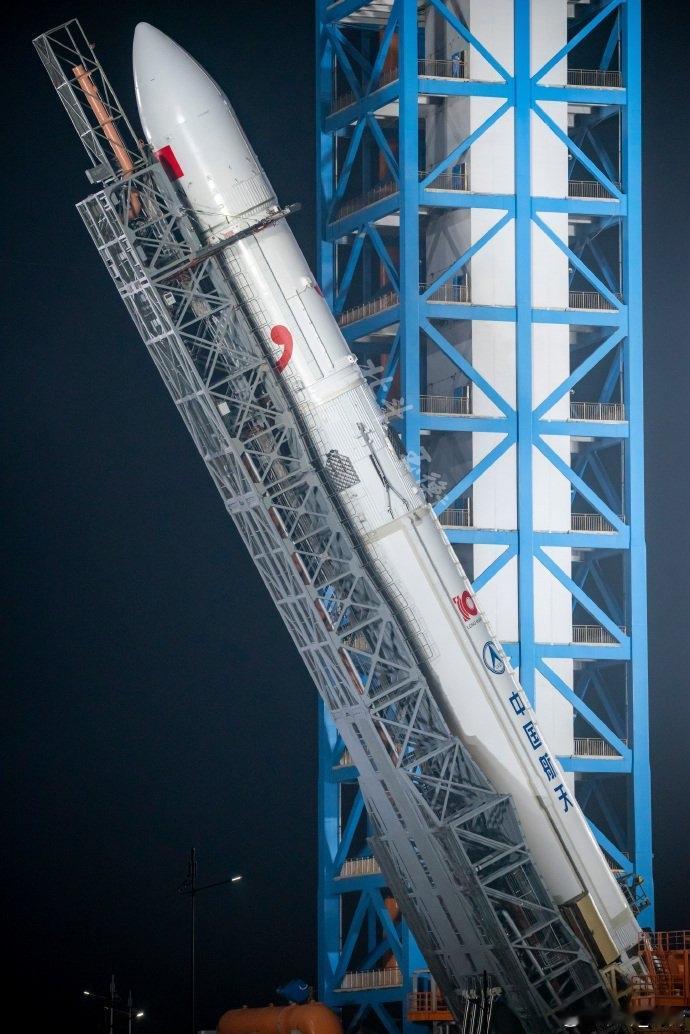 长征十号乙火箭在文昌商业航天发射中心2号发射工位的架立排练。传闻发射时间可能在4