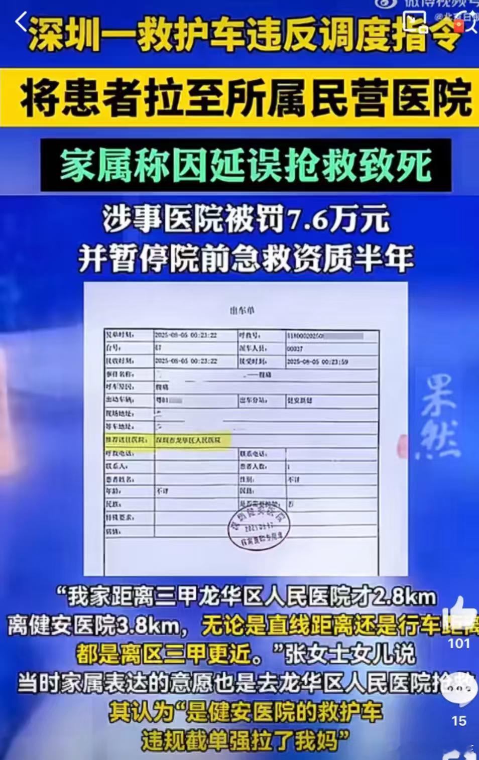深圳通报救护车截单延误抢救致死这事真的瞎搞啊,打了120急救不送指定的医院,两次