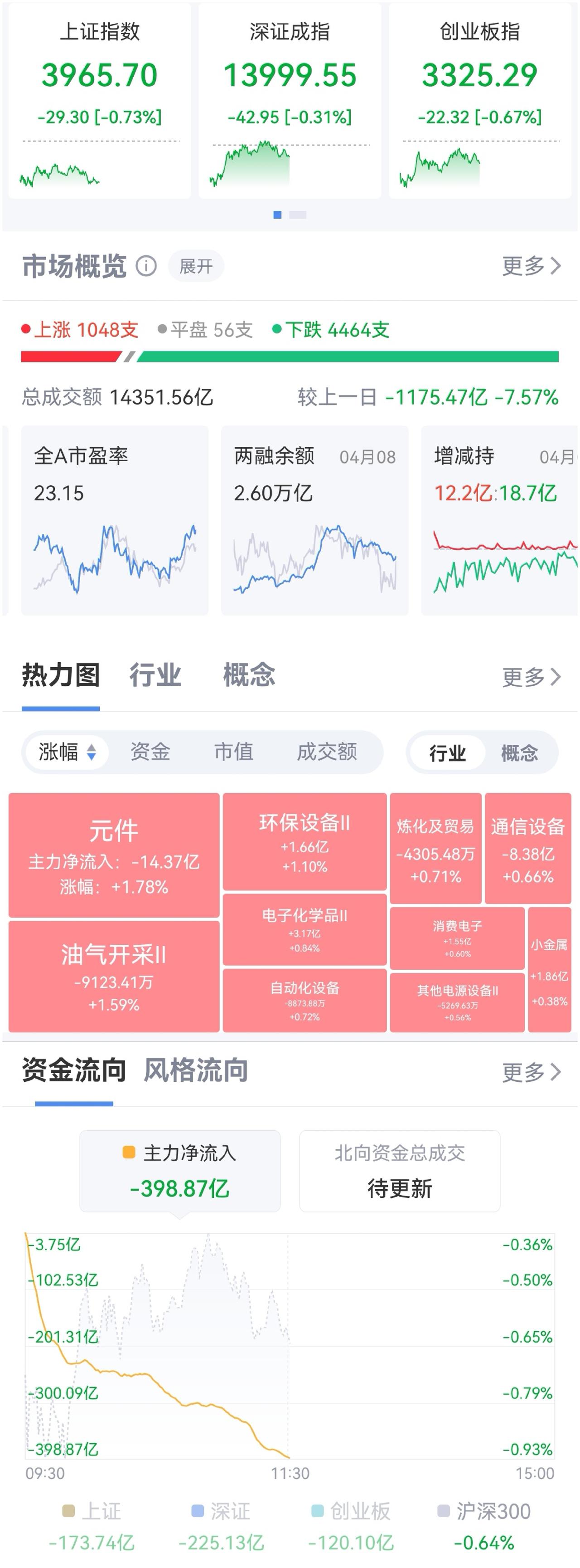 午盘:沪-0.73%、深-0.31%、创-0.67%。