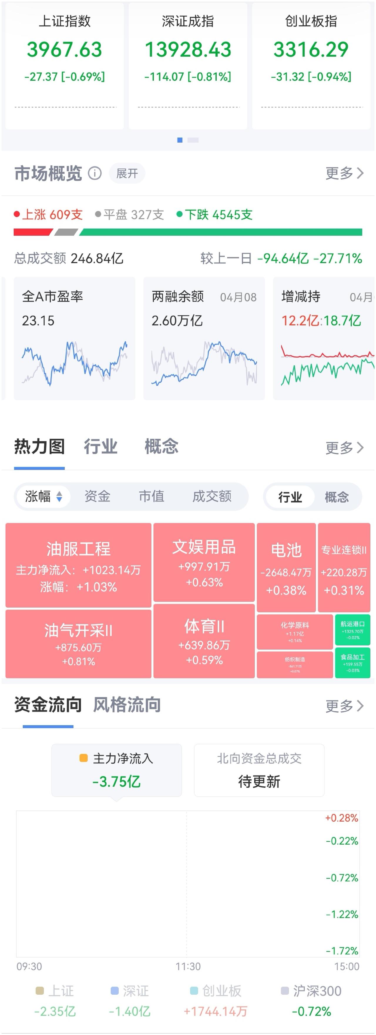 开盘:沪-0.69%、深-0.81%、创-0.94%。