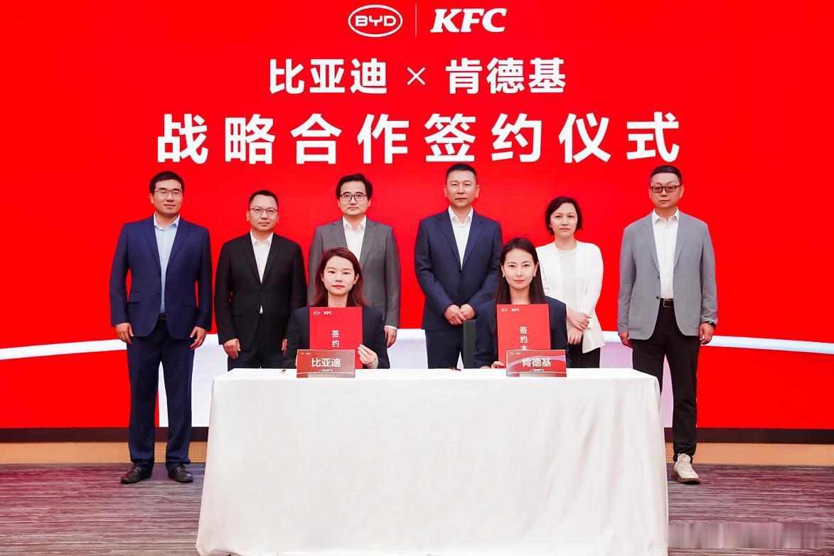 比亚迪品牌及公关处总经理李云飞、品牌及公关处副总经理杜国忠、品牌总监庞博、品牌营销总监方宁,以及肯德基中国品牌总经理汪涛、百胜中国首席顾客官兼肯德基中国品牌企划总经理陈琦、肯德基中国大区营运副总裁胡殿冰、肯德基中国企划总监徐进等双方代表,共同出席签约仪式并见证战略合作启动。