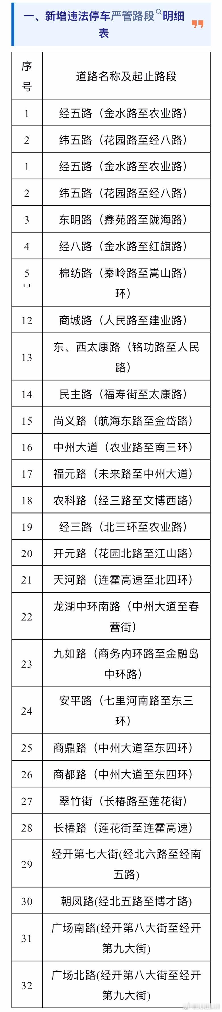 【4月15日起,郑州新增32处违停严管路段】近日,郑州市公安局交通管理支队发布通告,决定自2026年4月15日0时起,在郑州市城区部分路段增设违法停车严管路段。机动车在严管路段违法停车的,公安交管部门将依照有关法律法规的规定,通过现场查纠或交通技术监控设备、移动执法终端设备抓拍等方式直接进行处罚,严重妨碍其他车辆、行人通行的,公安交管部门将依法拖移车辆并予以处罚。