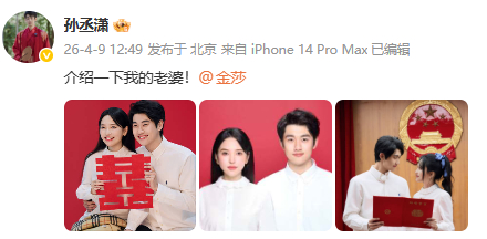当天是两人合体参加的综艺《妻子的浪漫旅行2026》首期开播,在片中,金莎与孙丞潇开单身派对,准备领证。