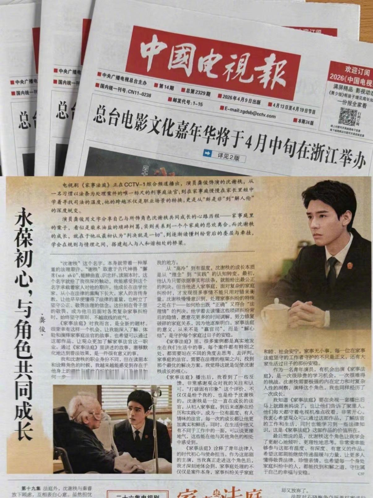 龚俊闷声干大事!居然在中国电视报撰文分享了关于《家事法庭》里自己饰演的角色沈谢秩